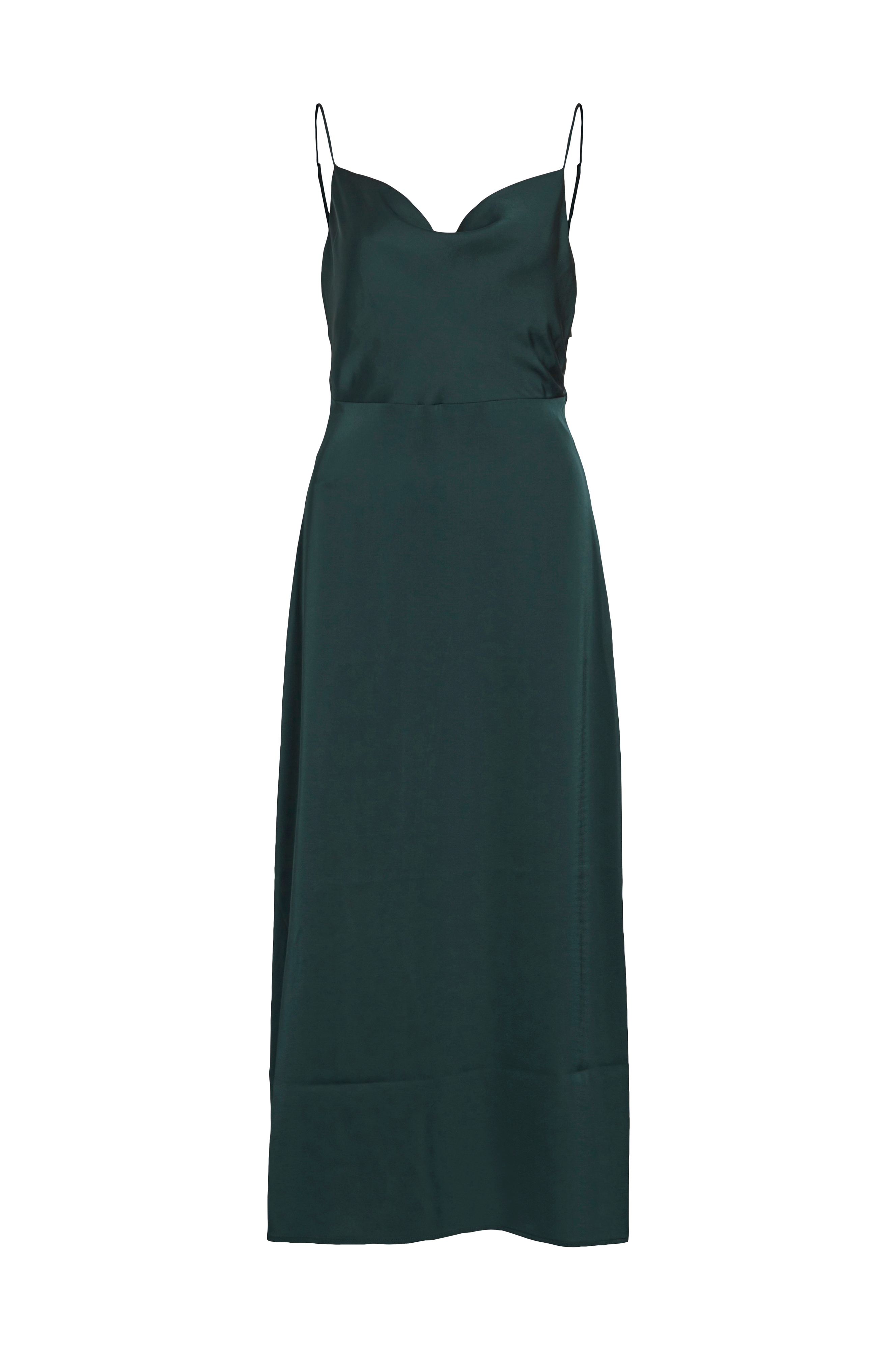 • Fuld længde, elegant kjole i satin• Tynde, justérbare skulderstropper• Dyb ryg• Skjult lynlås i siden• Længde: 134 cm i størrelse 36