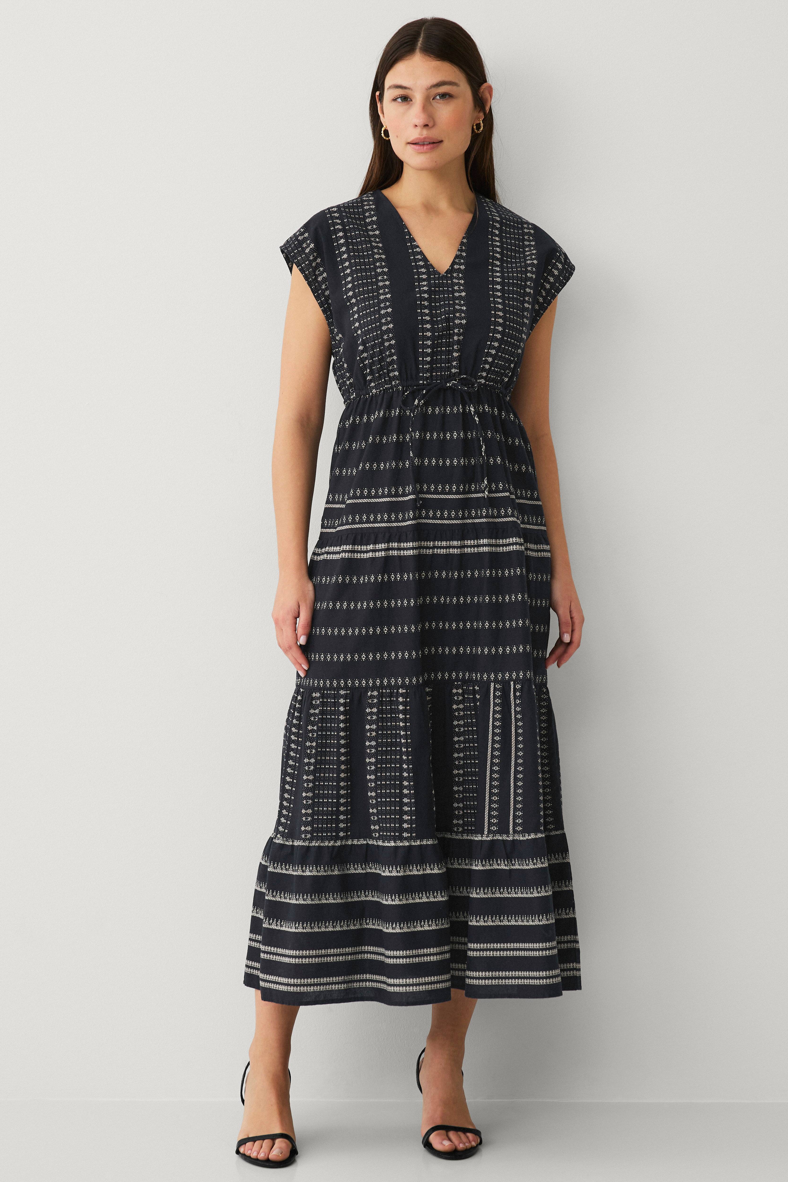 • Ærmeløs model med svaj• Markeret talje med træksnørre• V-formet halsudskæring• Længde: 133 cm i størrelse 36