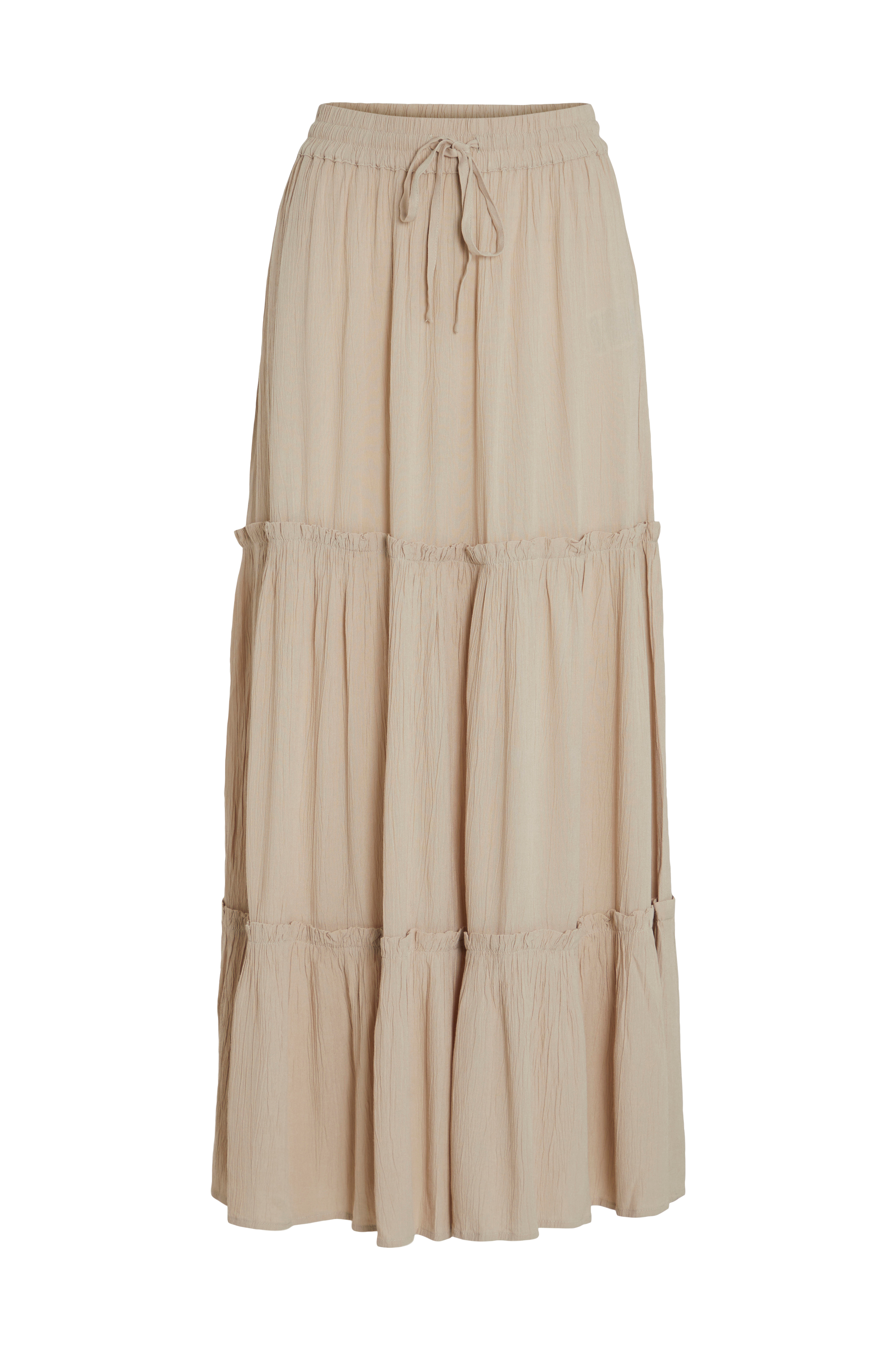 • Elastisk talje med træksnørre • Volanter på skørtet • Rynket kvalitet • Længde: 102 cm i størrelse 36 • Produktet indeholder viskose fra Livaeco by Birla Cellulose™, en syntetisk cellulosefiber af træmasse der kommer fra kontrolleret og ansvarsfuldt skovbrug.
