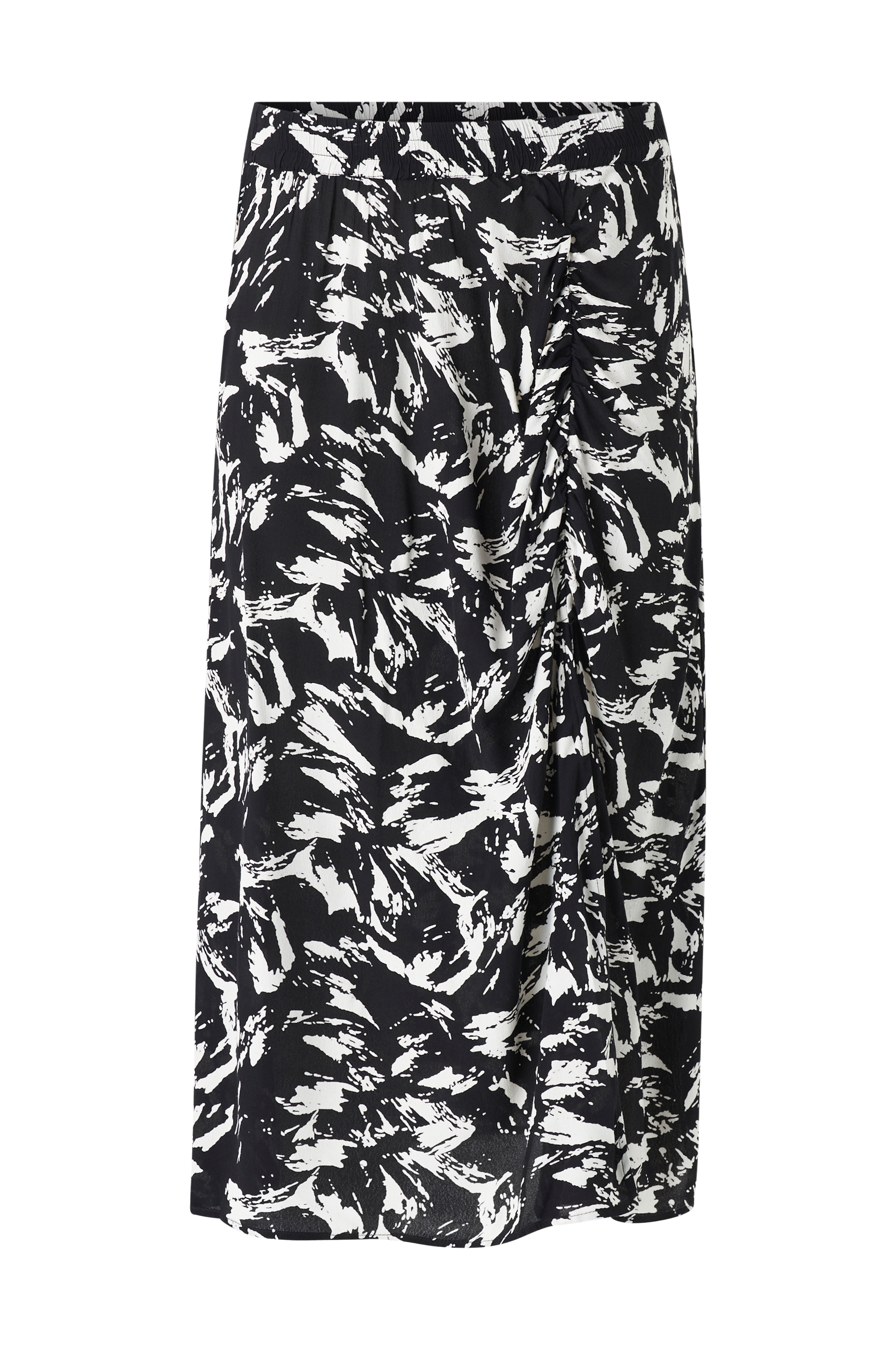 • Mønstret midi nederdel med slids• Drapering foran• Elastisk bånd ved taljen• Længde: 80 cm i størrelse 36