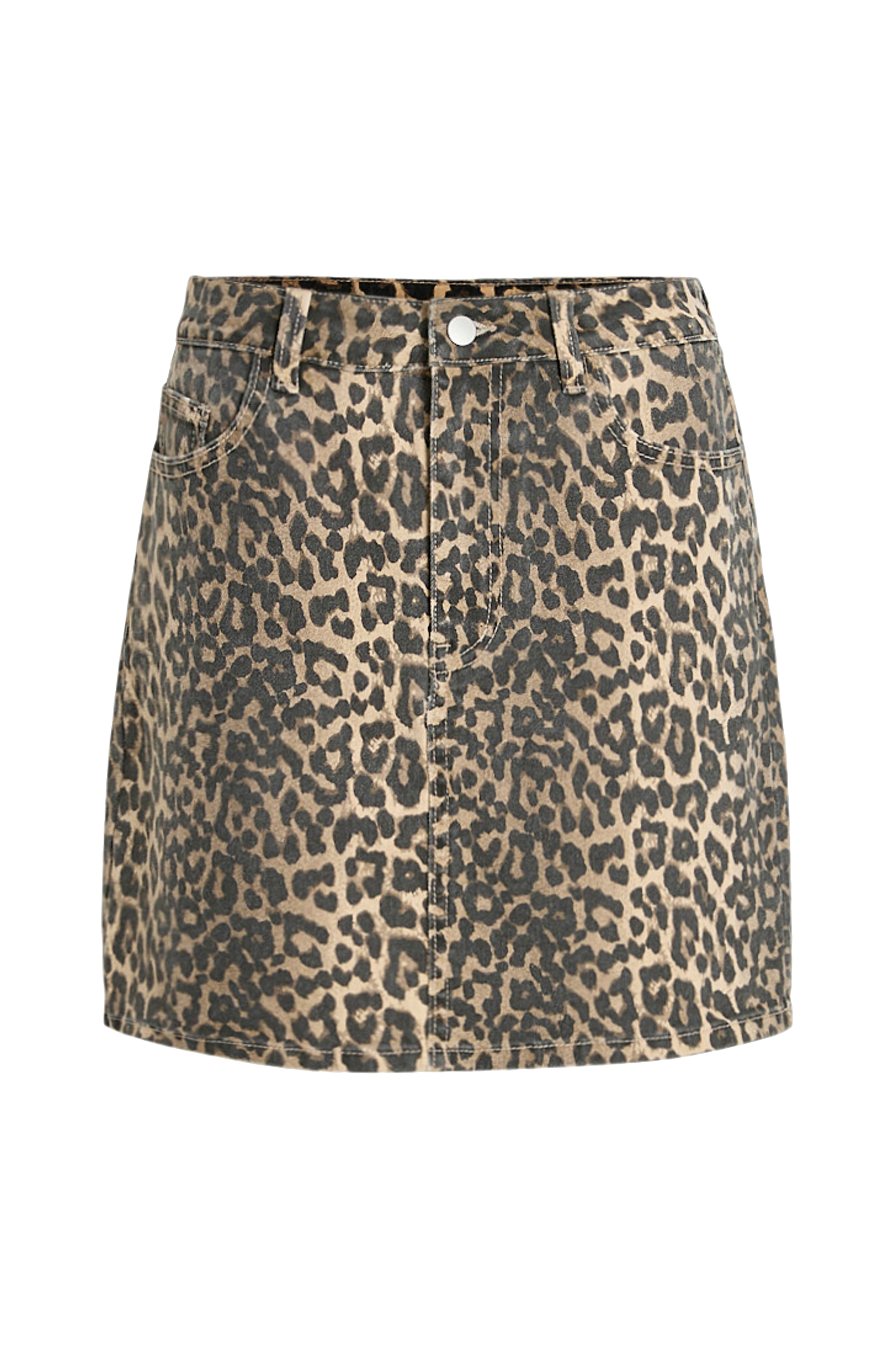 • Kort, leopardmønstret nederdel• Femlommemodel• Gylp med lynlås• Længde: 41 cm i størrelse 36