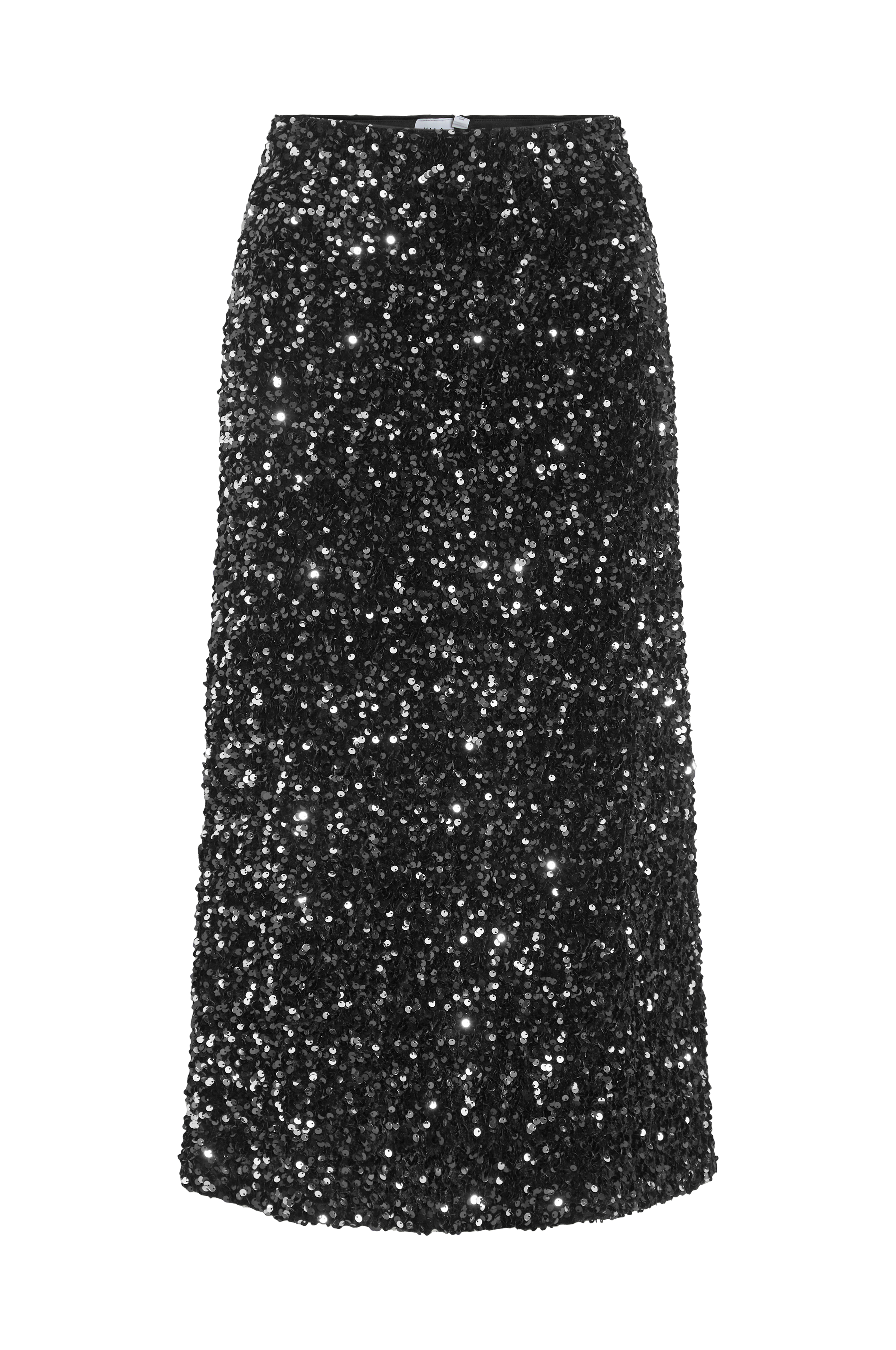 • Midi nederdel i velour med pailleter hele vejen rundt• Elastik ved taljen• Kort trikotfor• Længde: 85 cm i størrelse S