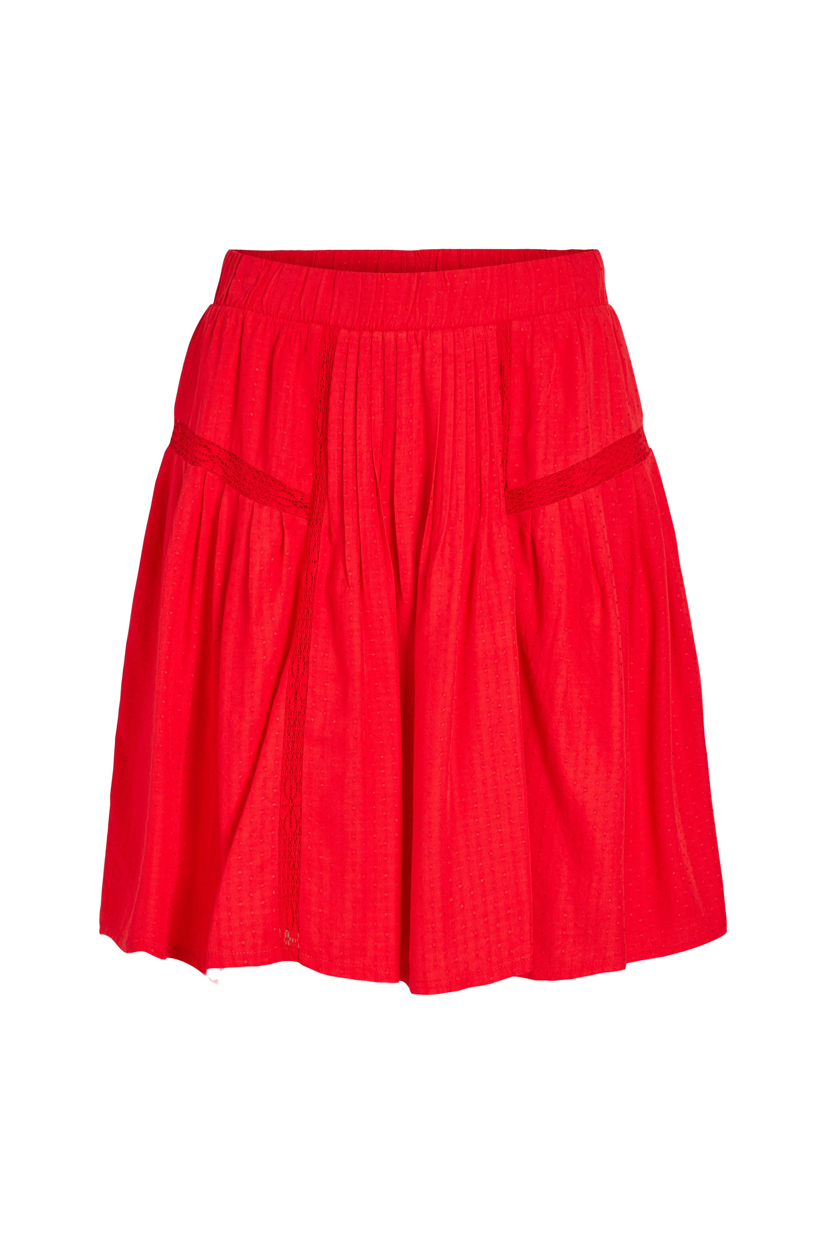 • Kort nederdel i viskose med detaljer i blonde hele vejen rundt