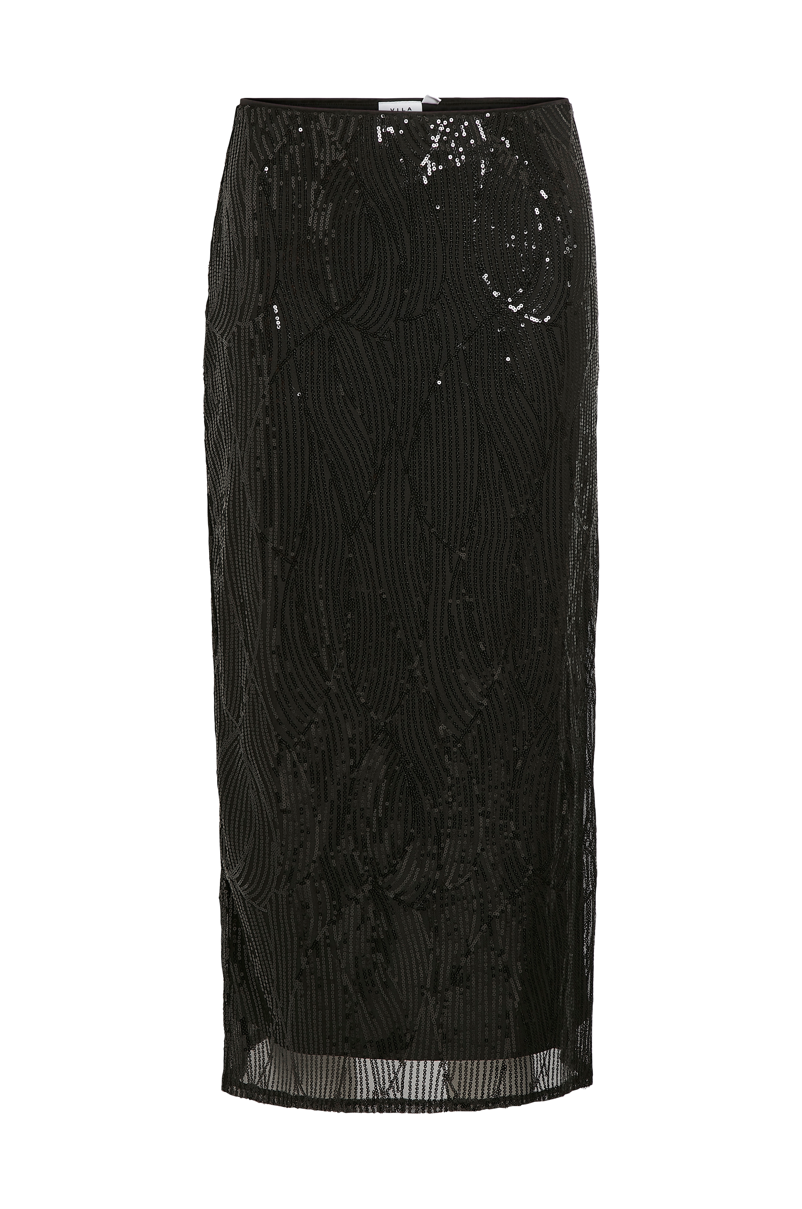 • Lang, snæver model i mesh med broderede pailletter• Indvendig elastik på toppen• Høj slids nederst i den ene side• Foret• Længde: 86 cm i størrelse S