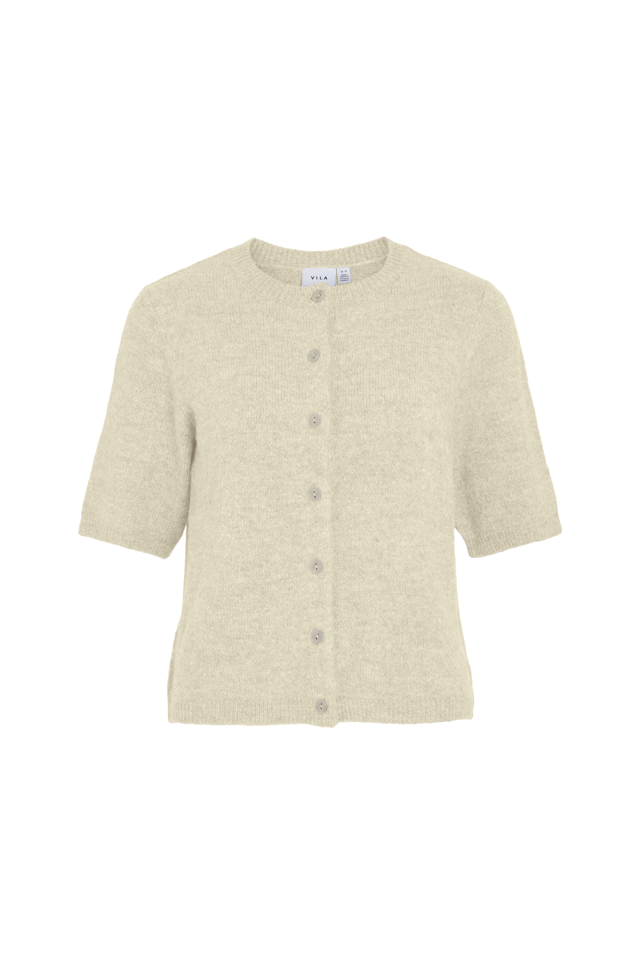 • Fintstrikket, kortærmet Pullover• Rund, ribbet halsudskæring• Ribstrik ved manchetterne og nederst• Dekorativ knapstolpe foran