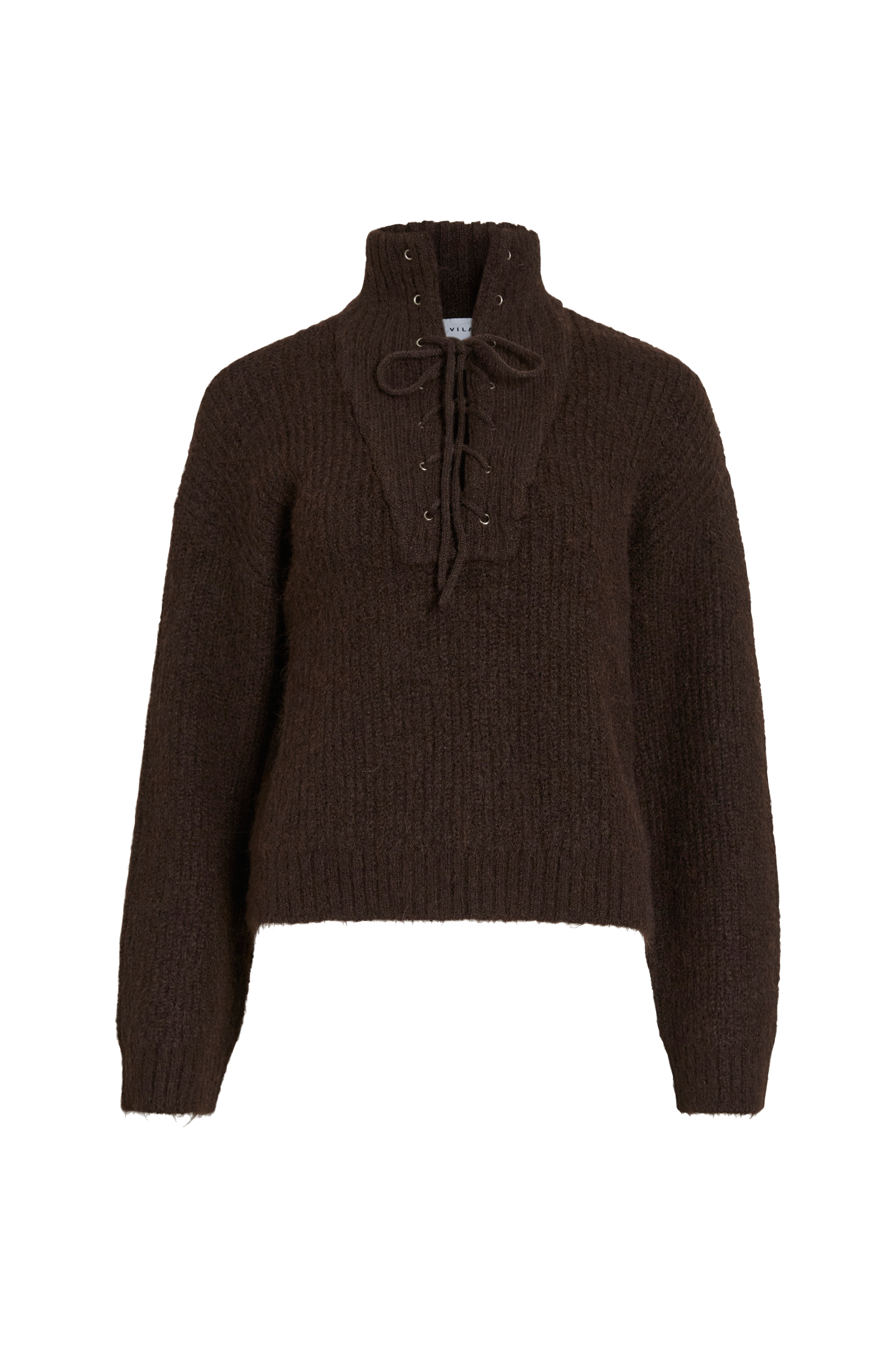 • Langærmet, ribstrikket Pullover• Opretstående krave med sløjfedesign• Ribmanchetter ved manchetterne og ved nederste kant