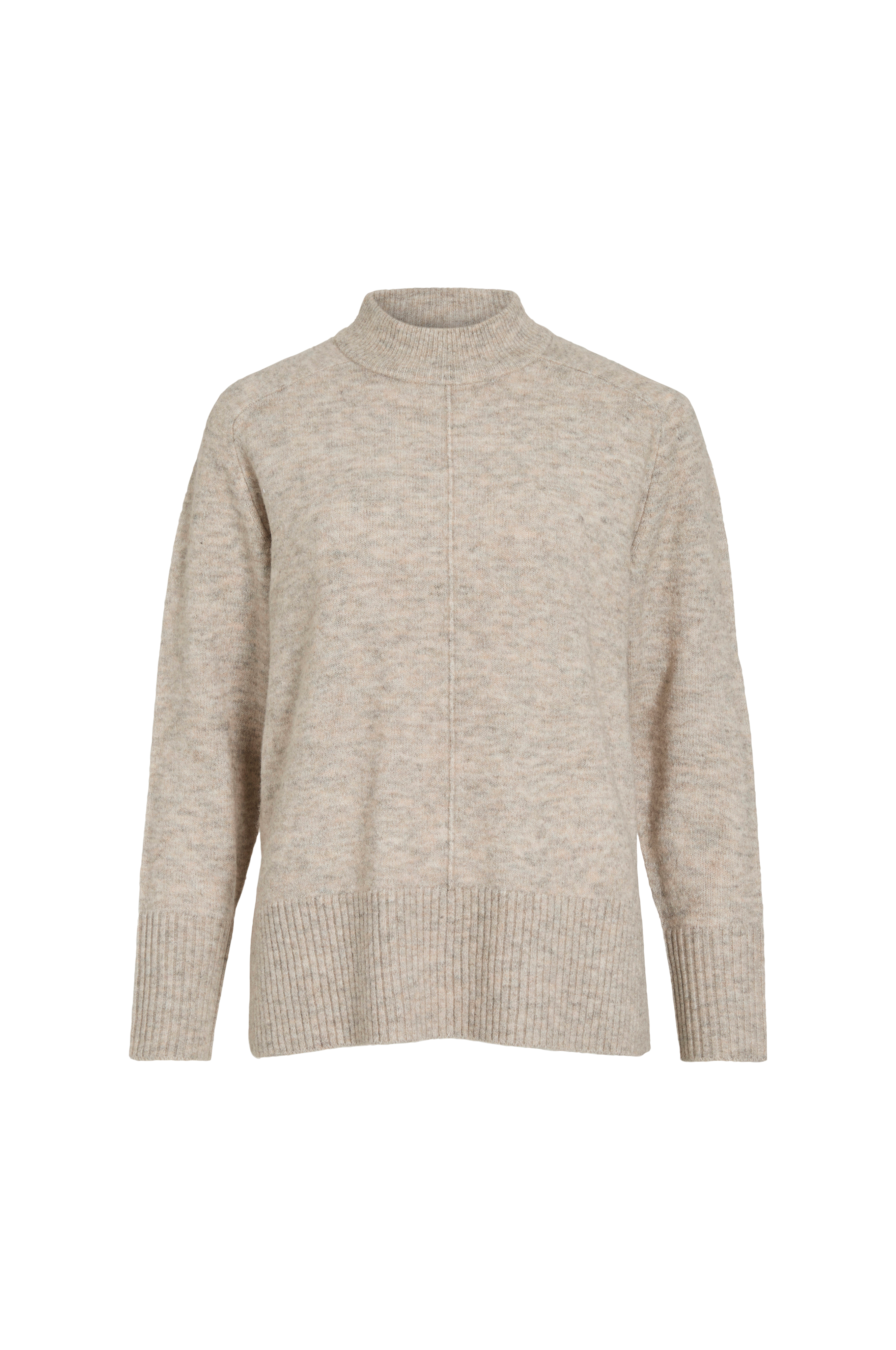 • Fintstrikket, blød Pullover med ribstrikket krave• Lange raglanærmer• Syet, dekorativt læg foran og bagpå• Ribstrik ved manchetterne og ved nederste kant