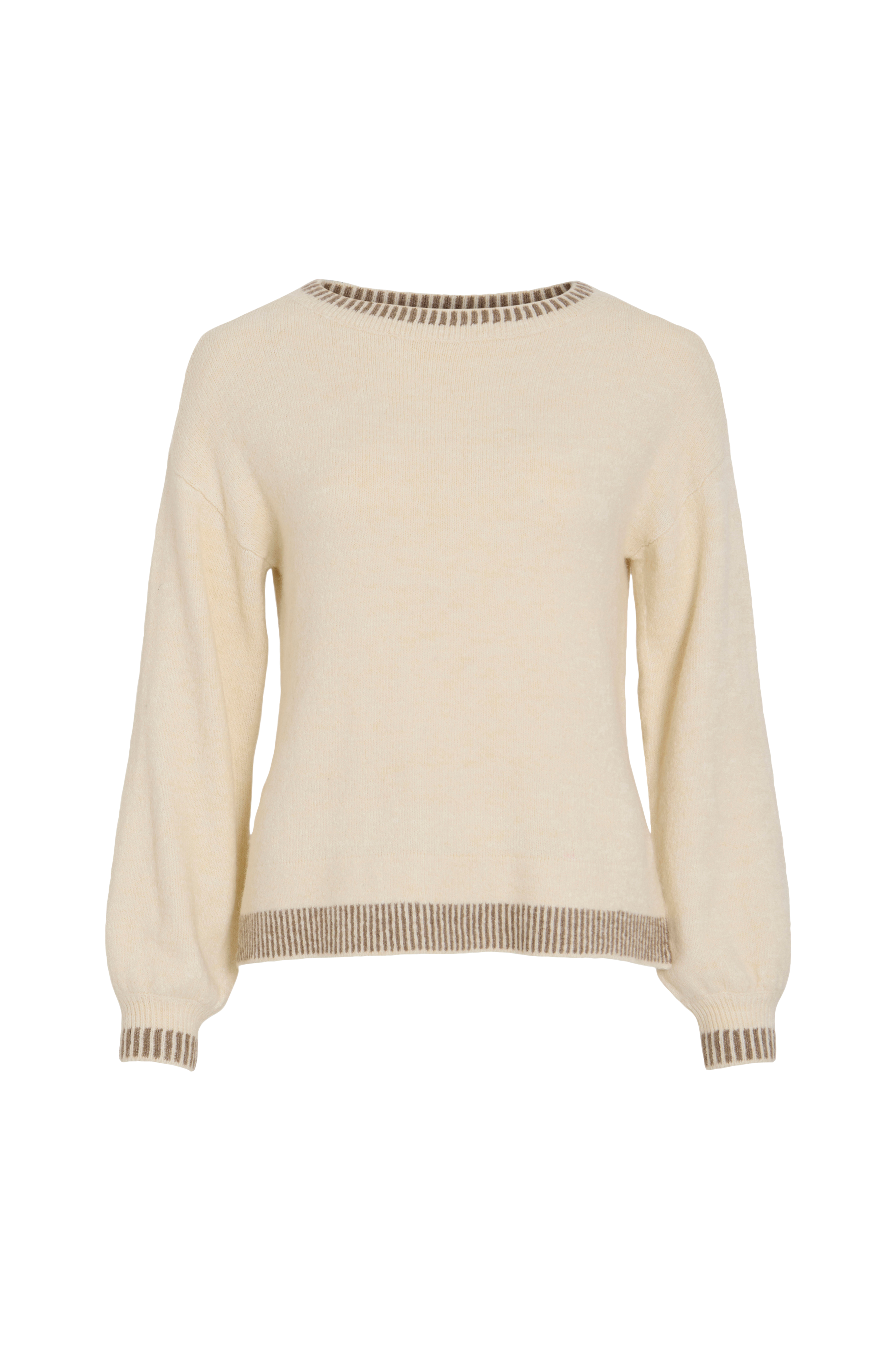 • Fintstrikket Pullover med mønsterstrikkede detaljer• Rund, ribbet halsudskæring• Ribstrik ved manchetterne og ved nederste kant• Slids nede i siderne