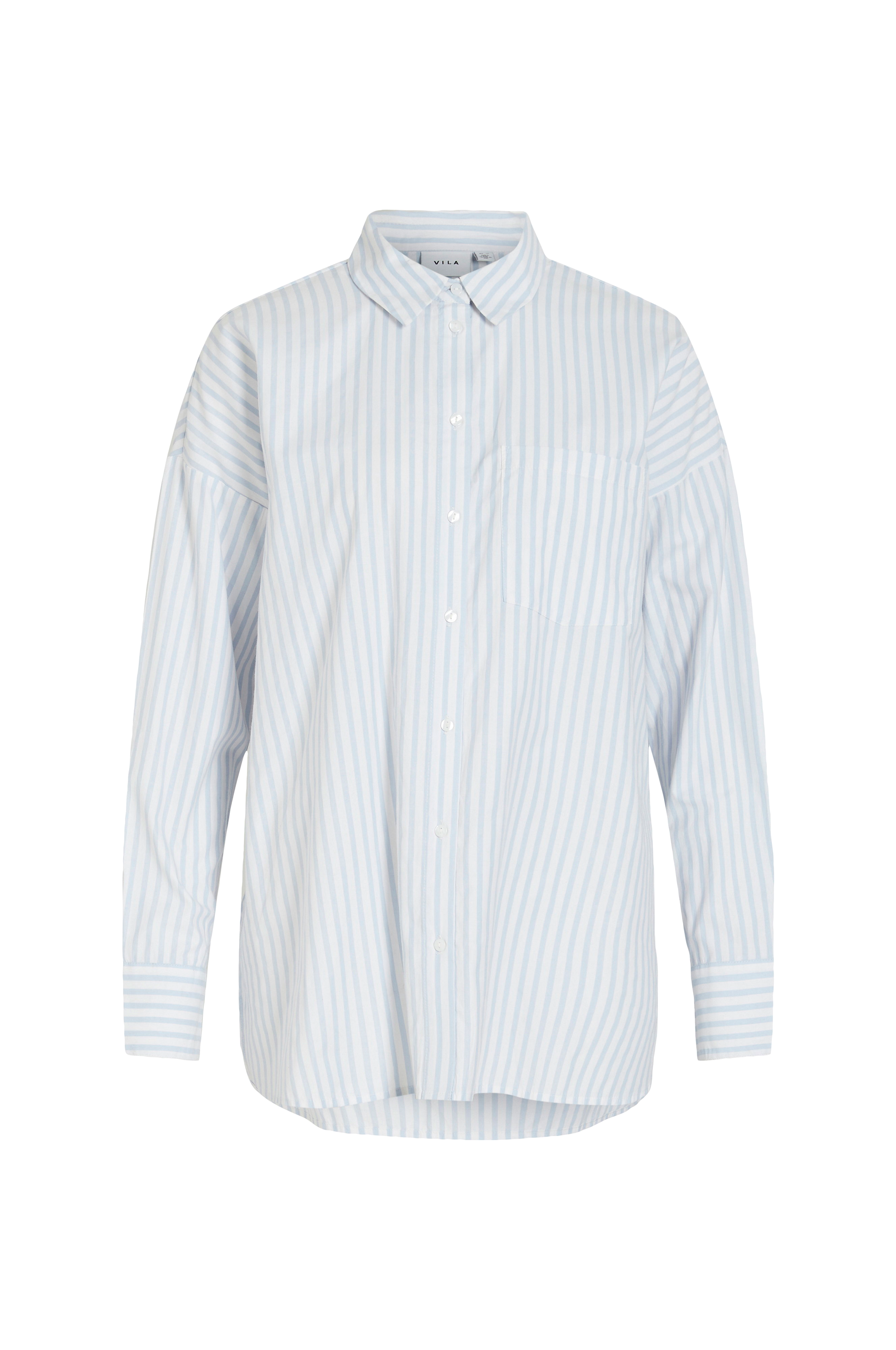 • Oversize model• Lille krave• Knapper hele vejen frem• En brystlomme• Langt ærme med manchet• Afrundede slidser nede i siderne med længere bagside