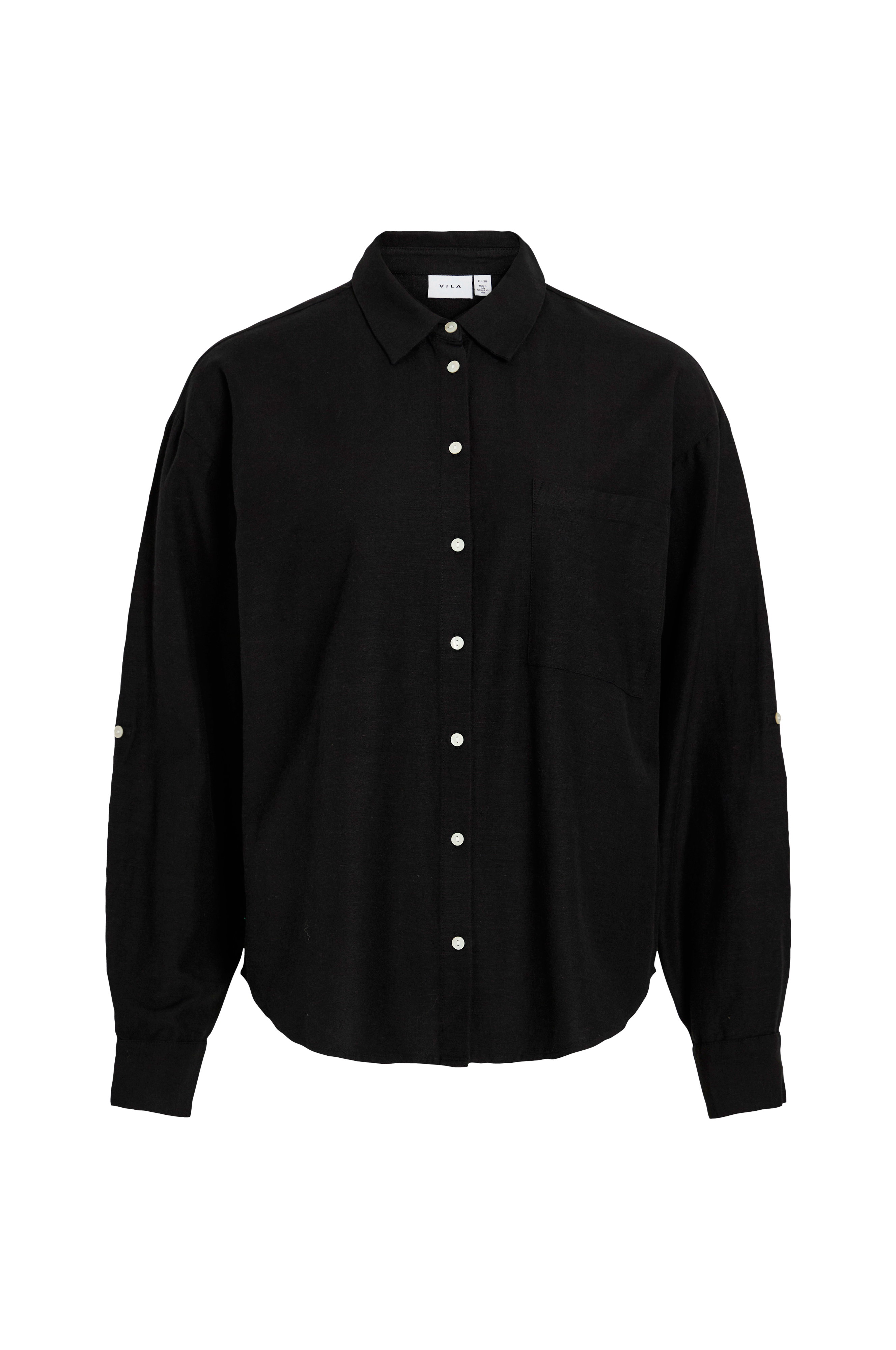 • Skjorte i hørblanding• Lange, opfoldende ærmer• En brystlomme• Afrundet søm