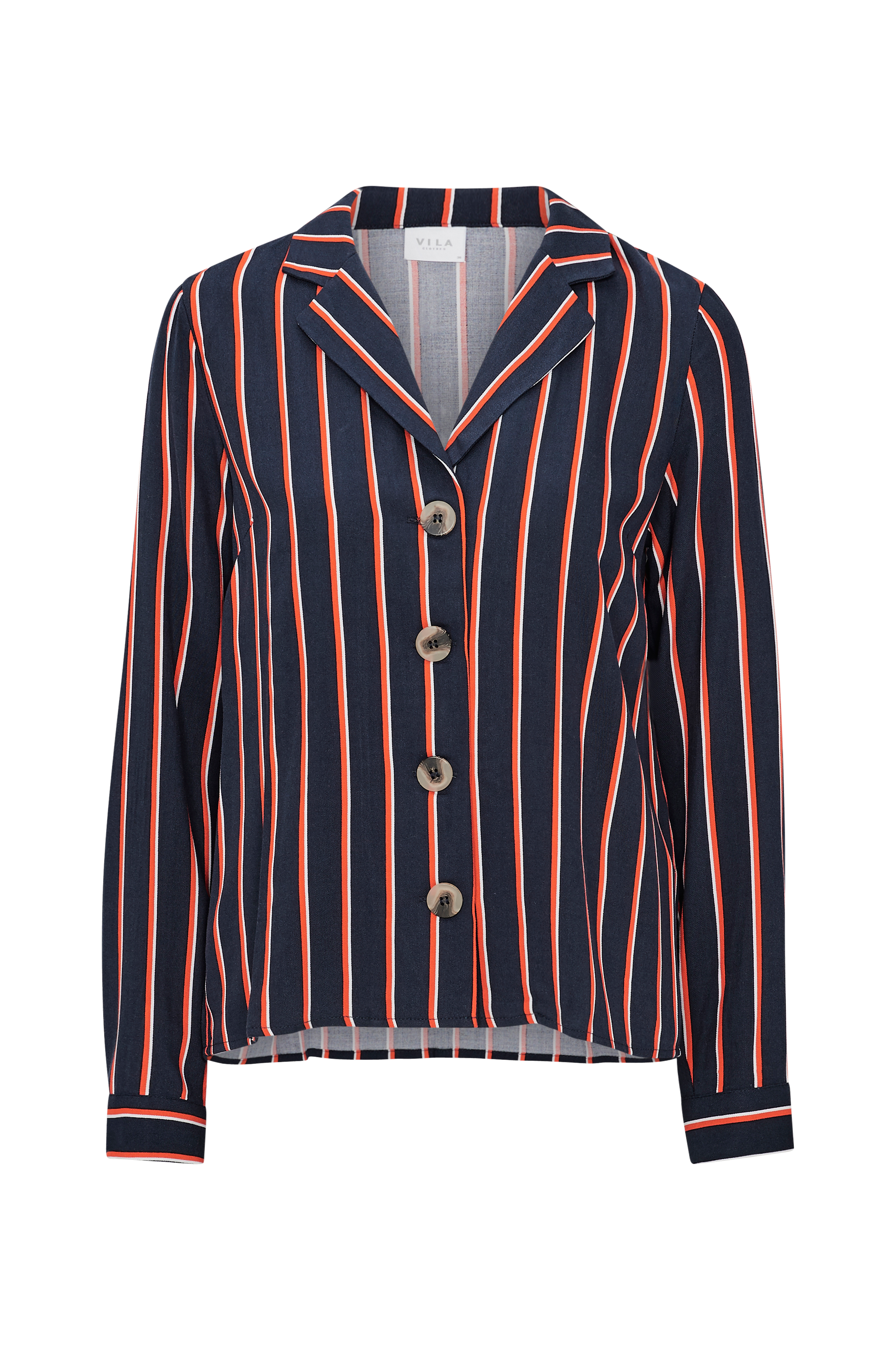 Skjorte viSezu Trackie L/S Shirt fra Vila i lige model med store knapper og krave med revers. Langt ærme med manchet og knapper. Lavet i vævet kvalitet.