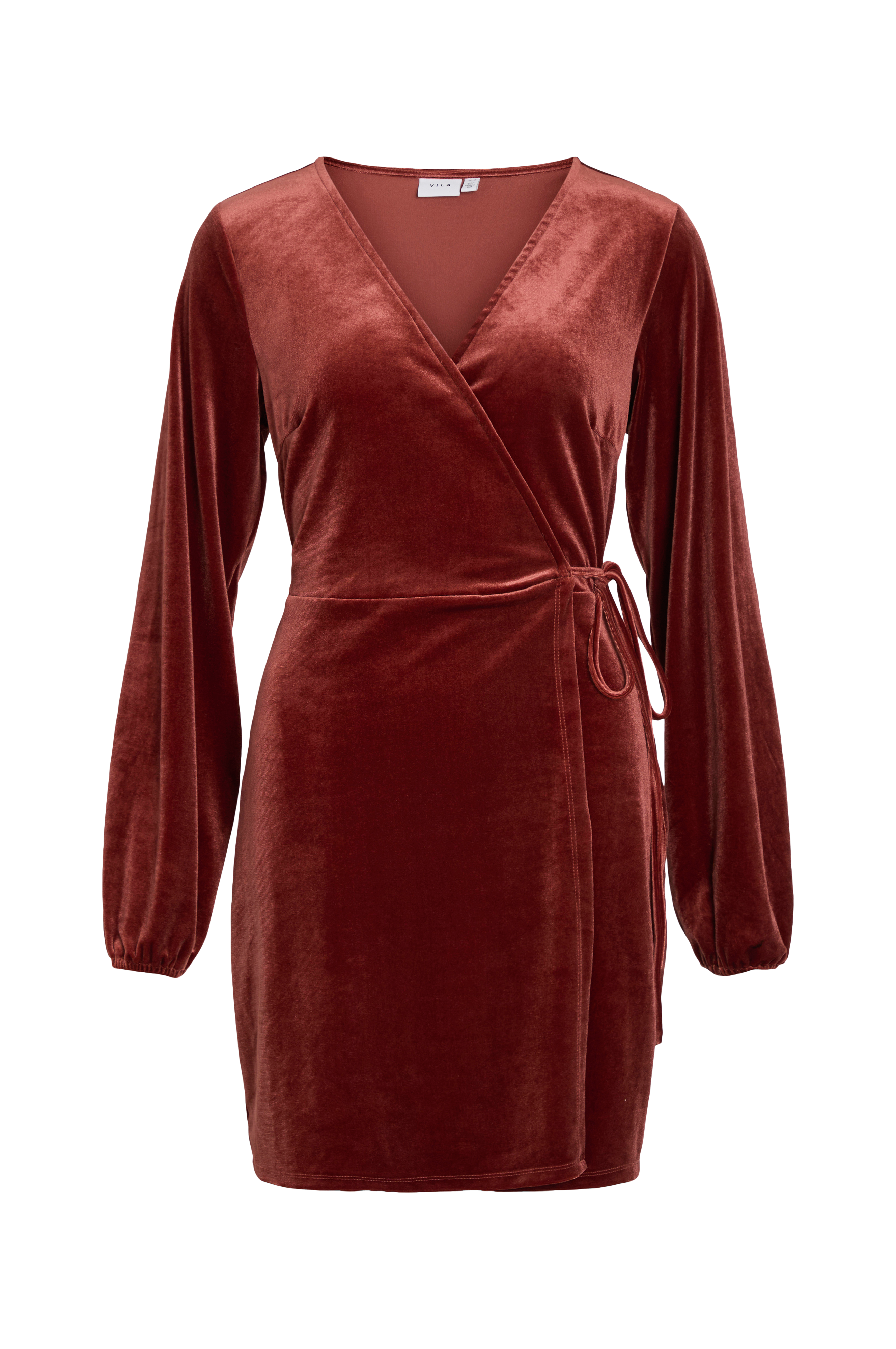 • Kjole i velour• Slå-om design med bindebånd i siden• Lange ærmer med elastiske manchetter• Længde: 87 cm i størrelse S