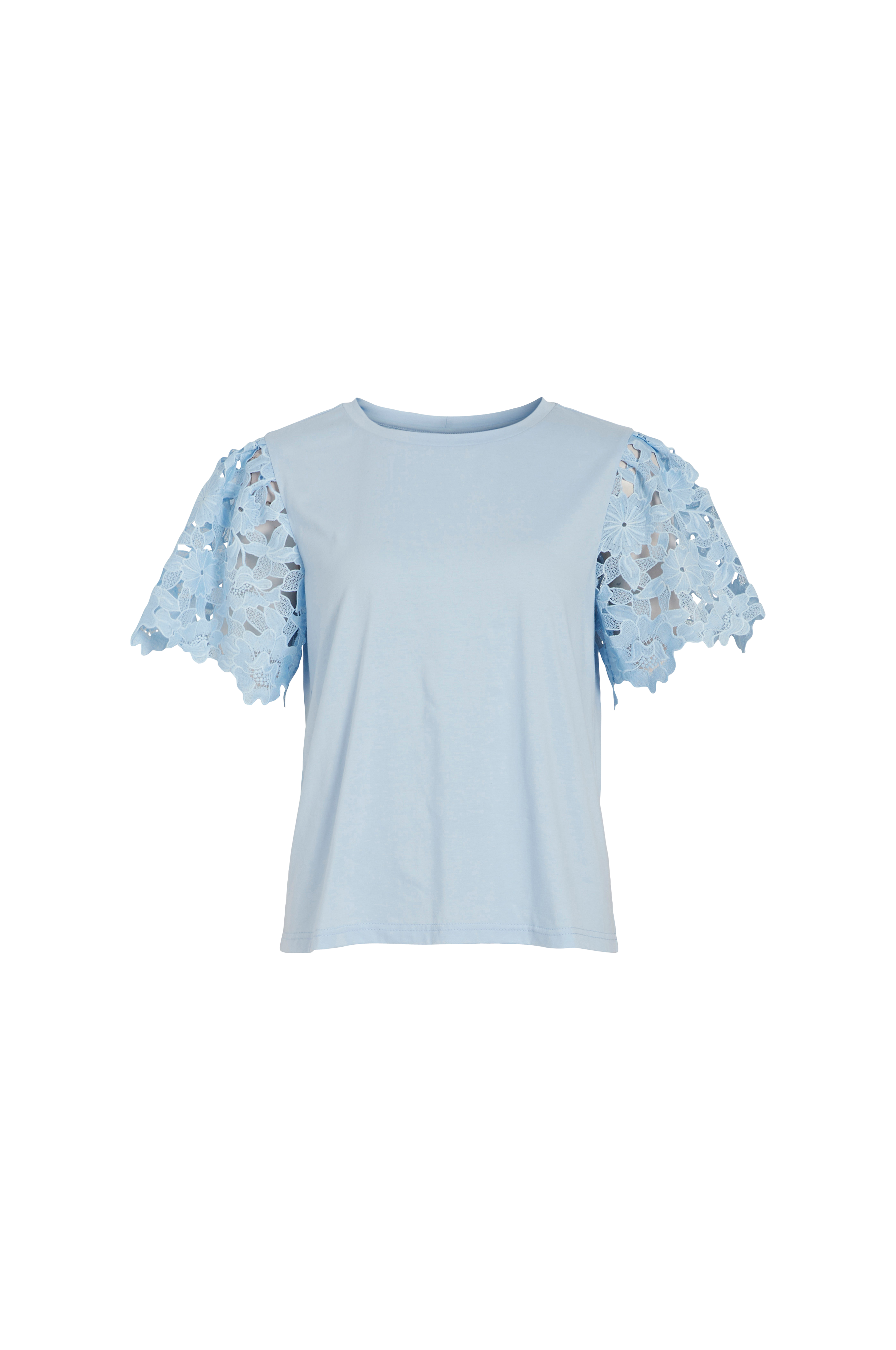 • Lige model med korte, brede ærmer i blonde• Rund hals med lille ribkant