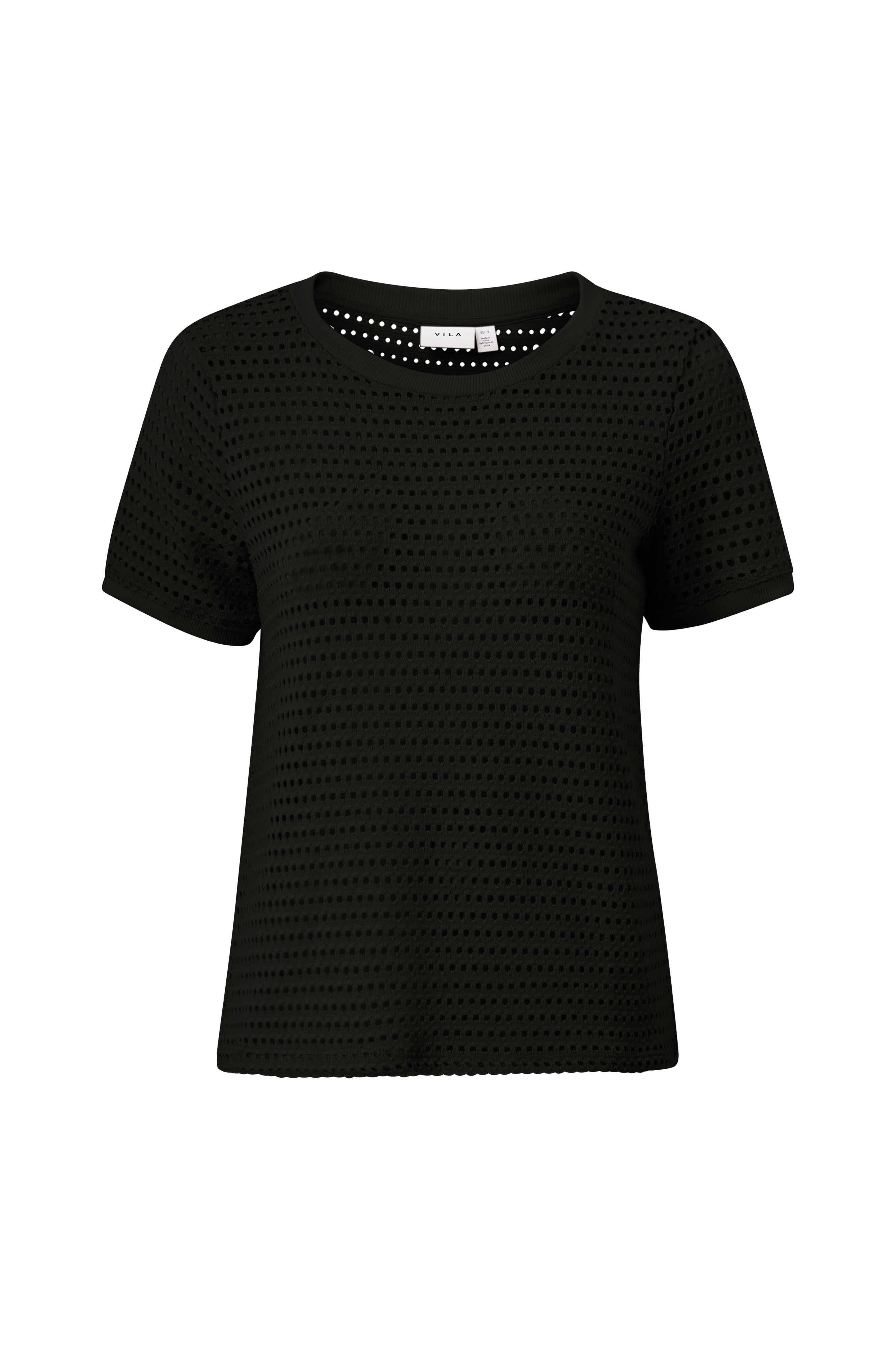 • Hulmønstret top• Korte ærmer• Ribbet kant ved manchetterne og i halsen