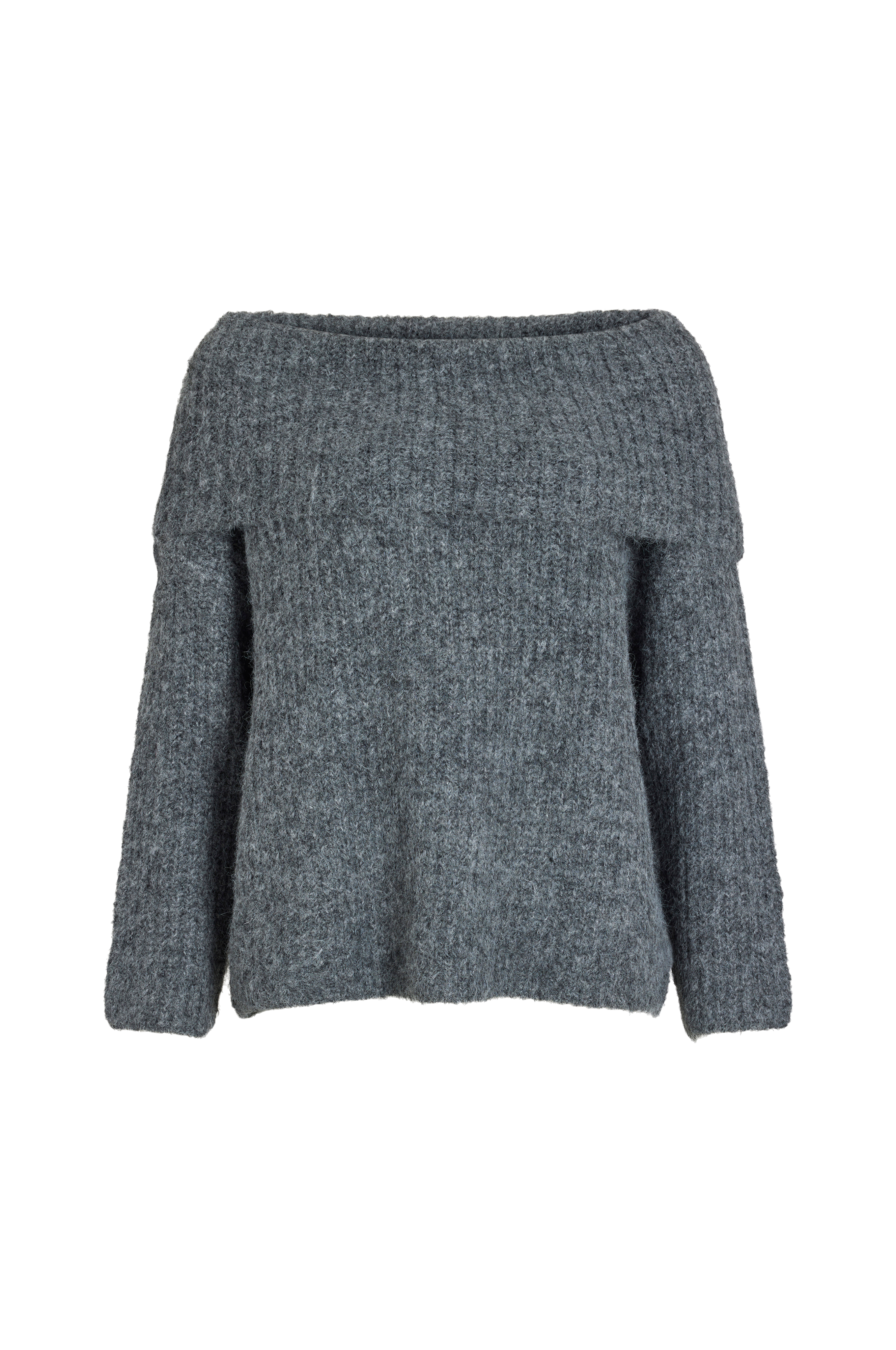 • Model med høj, bred, off shoulder krave• Nedsænket skulder• Langt ærme