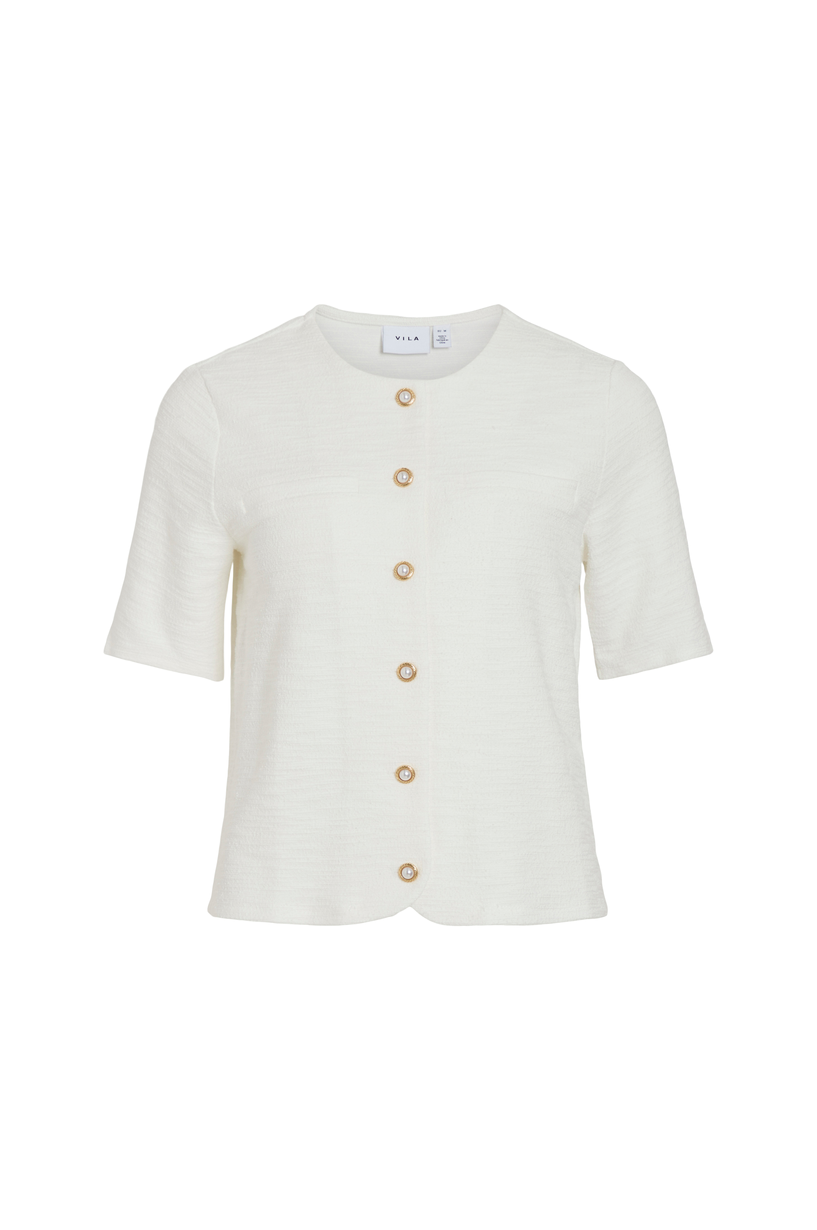 • Mønstervævet model i jersey• Rund hals• Dekorative knapper foran• Kort ærme• Snydelommer på brystet