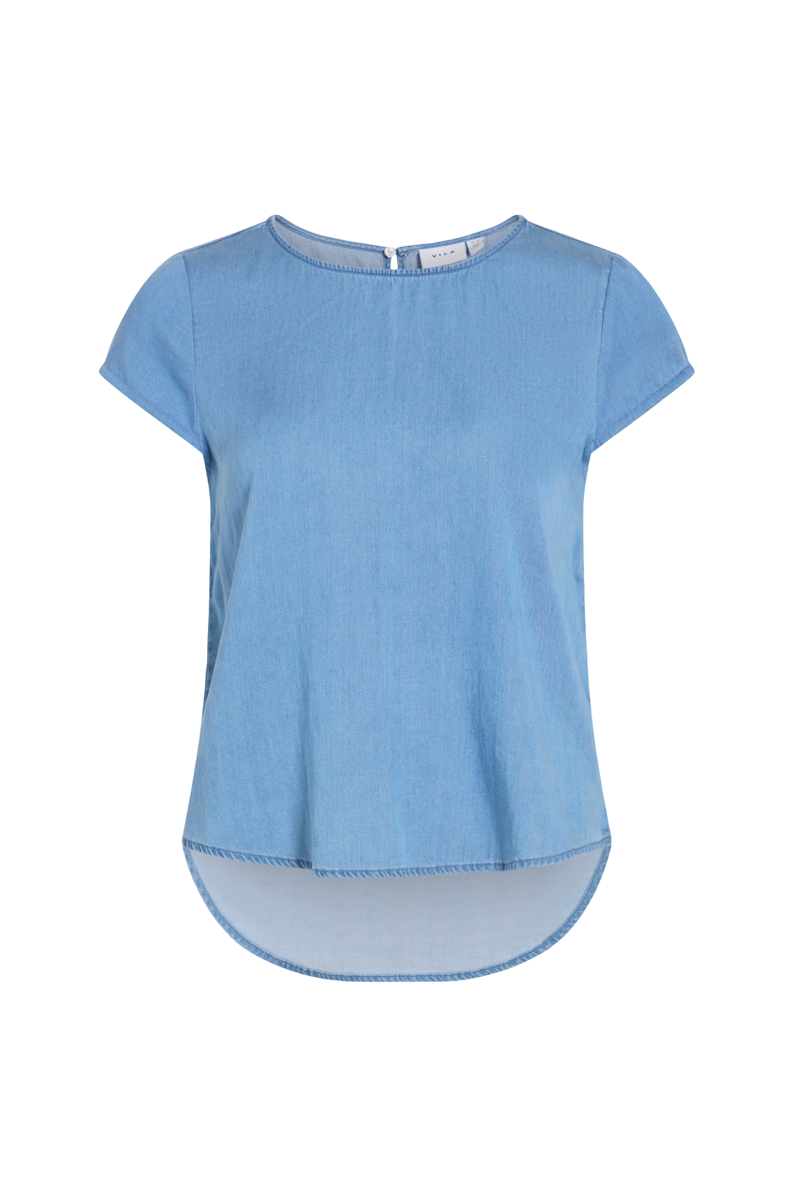 • Lige model i blødt denim• Rund hals med knap i nakken• Lille kort ærme• Afrundet, lang søm bagpå