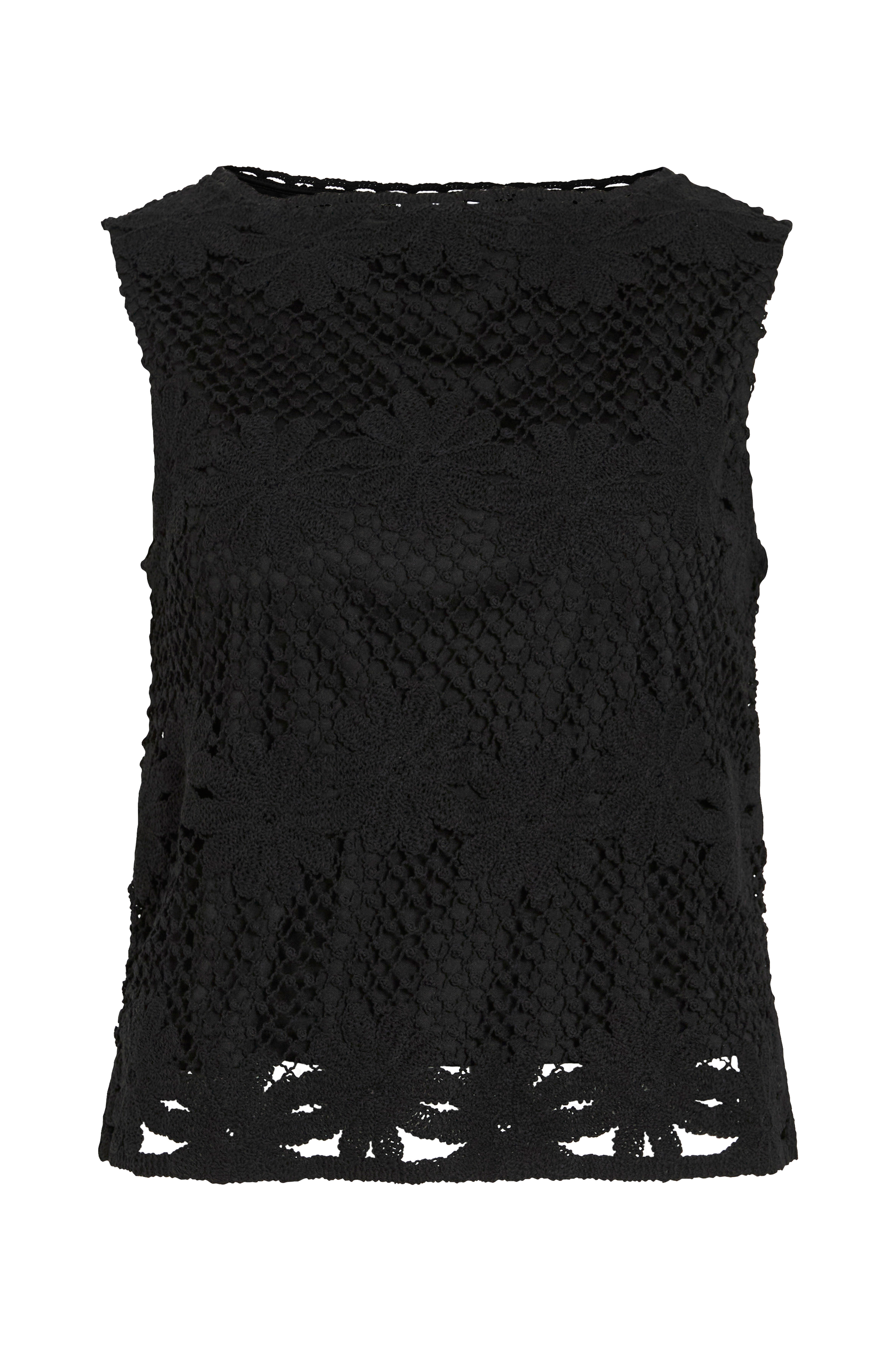 • Ærmeløs, mønsterstrikket top med Bådhals• Inderfor i jersey