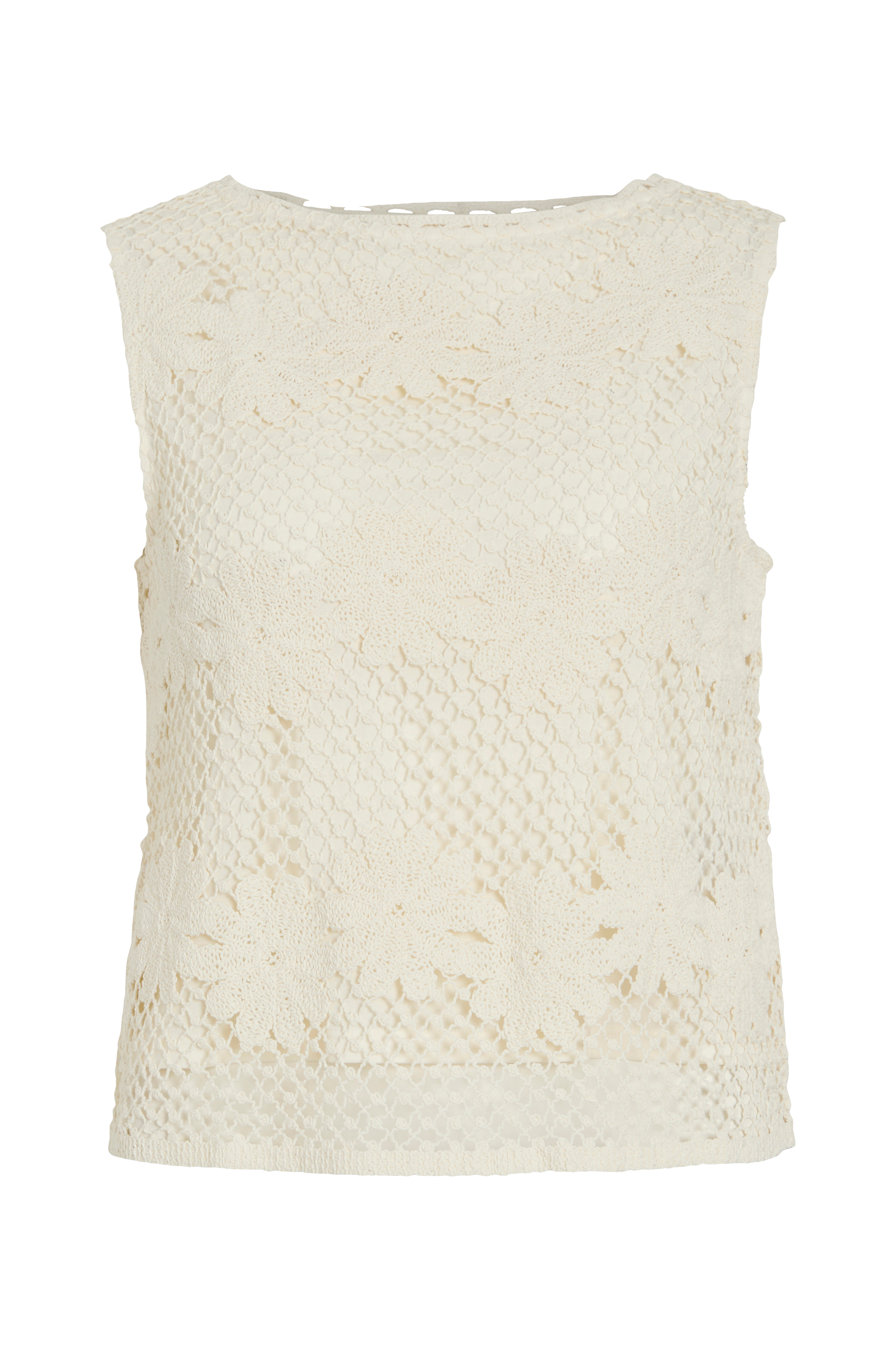 • Ærmeløs, mønsterstrikket top med Bådhals• Inderfor i jersey
