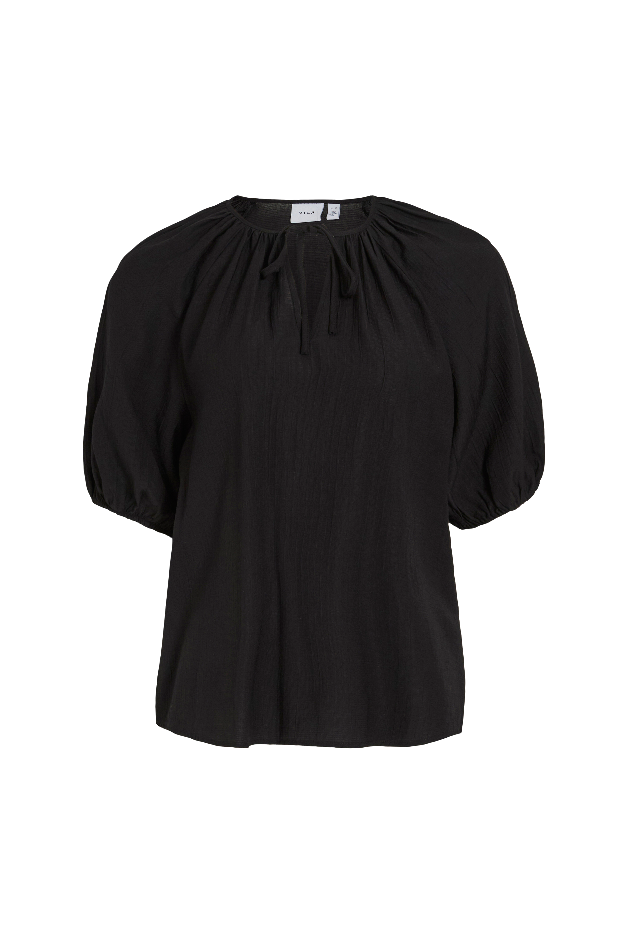 • Top i mønstret viskoseblanding• Afrundet halsudskæring med dekorativ åbning foran og bindebånd• 3/4 lange raglanærmer med elastik ved manchetterne• Løs pasform