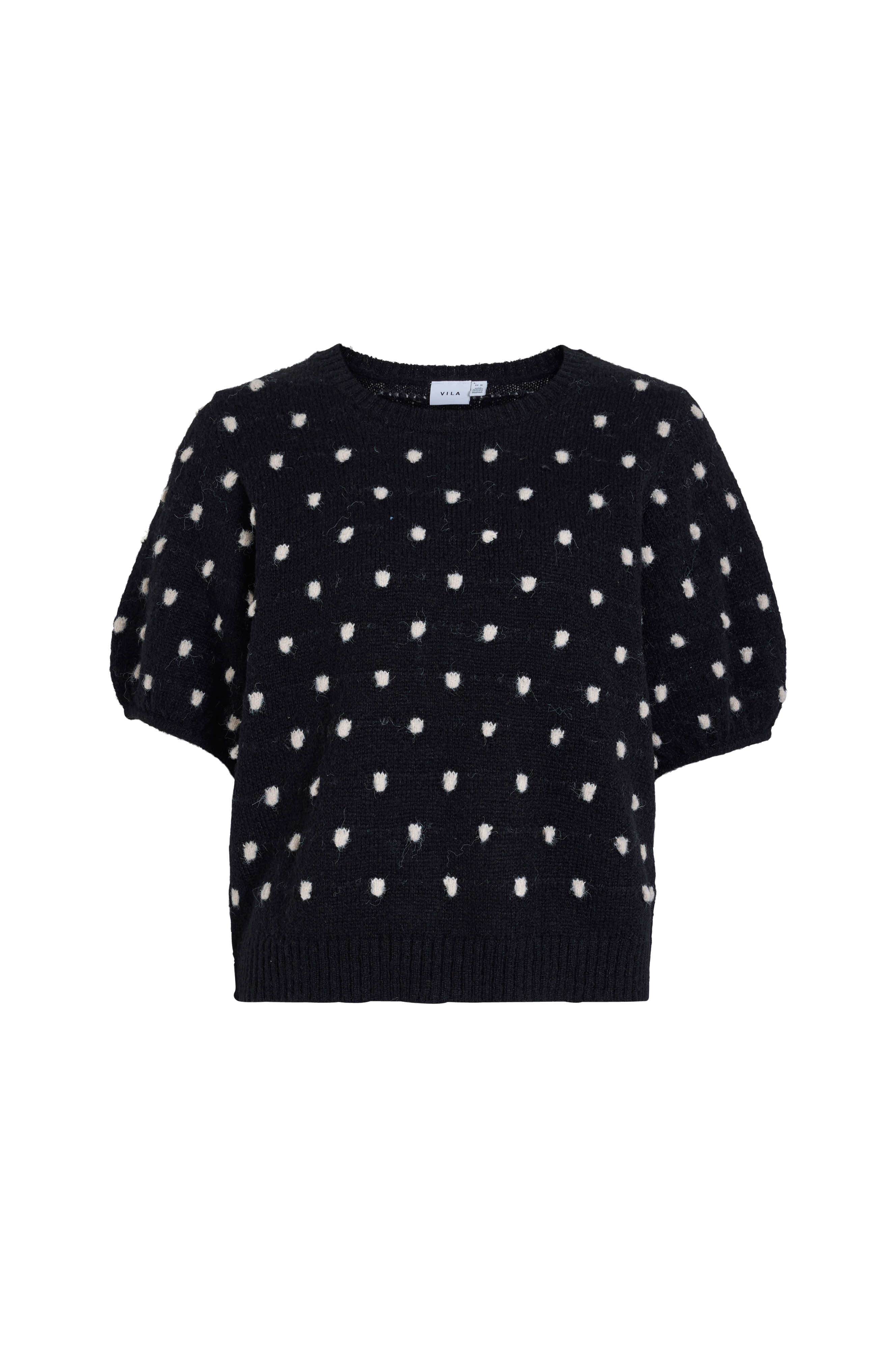 • Fintstrikket top i polyester med strikket, prikket mønster• Korte ærmer med smal ribbet kant• Afrundet halsudskæring med ribstrik• Ribstrik nederst