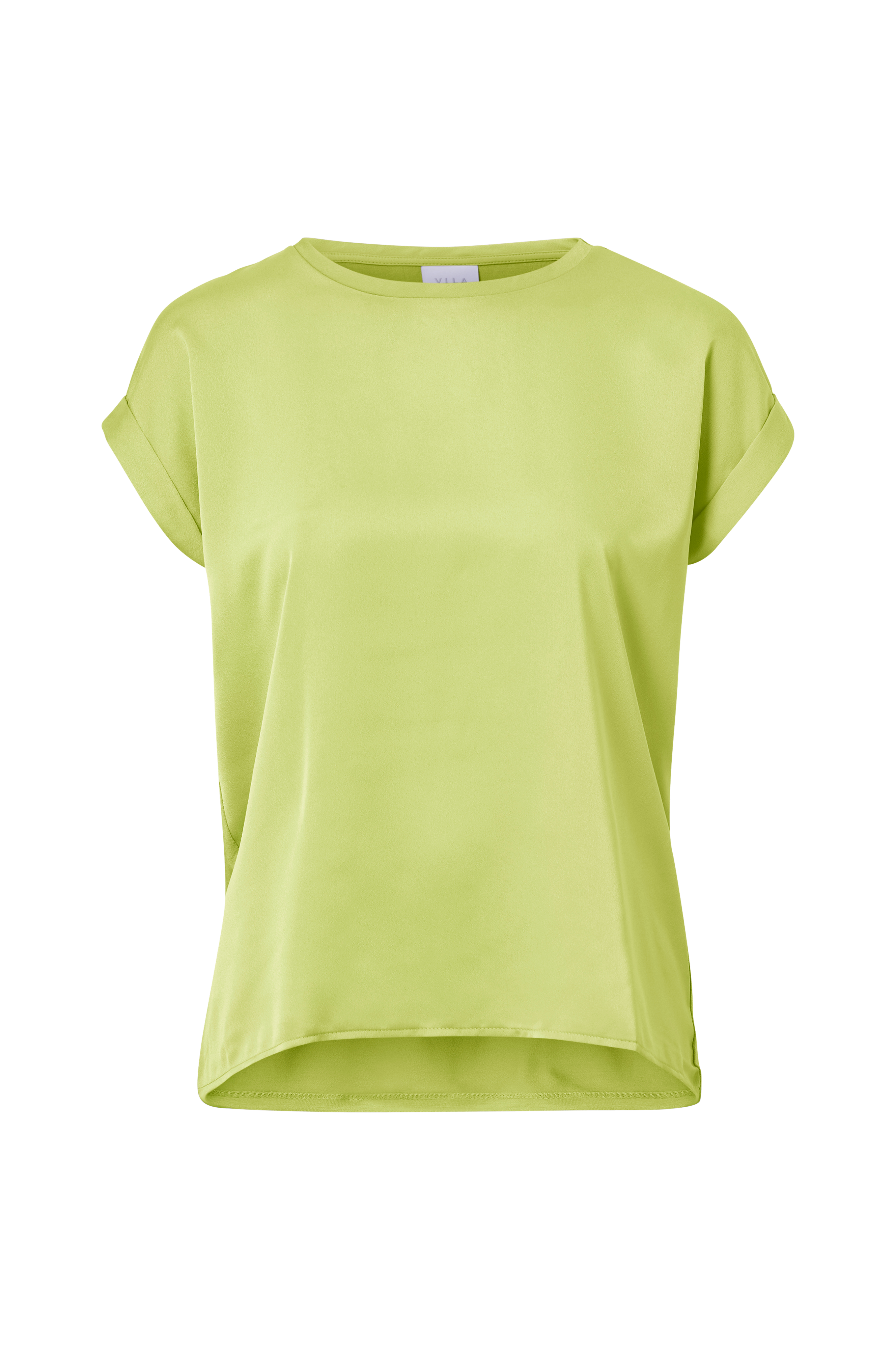 Top med blank forside i vævet kvalitet og bagside i jersey. Korte ærmer med opslag og rund hals.