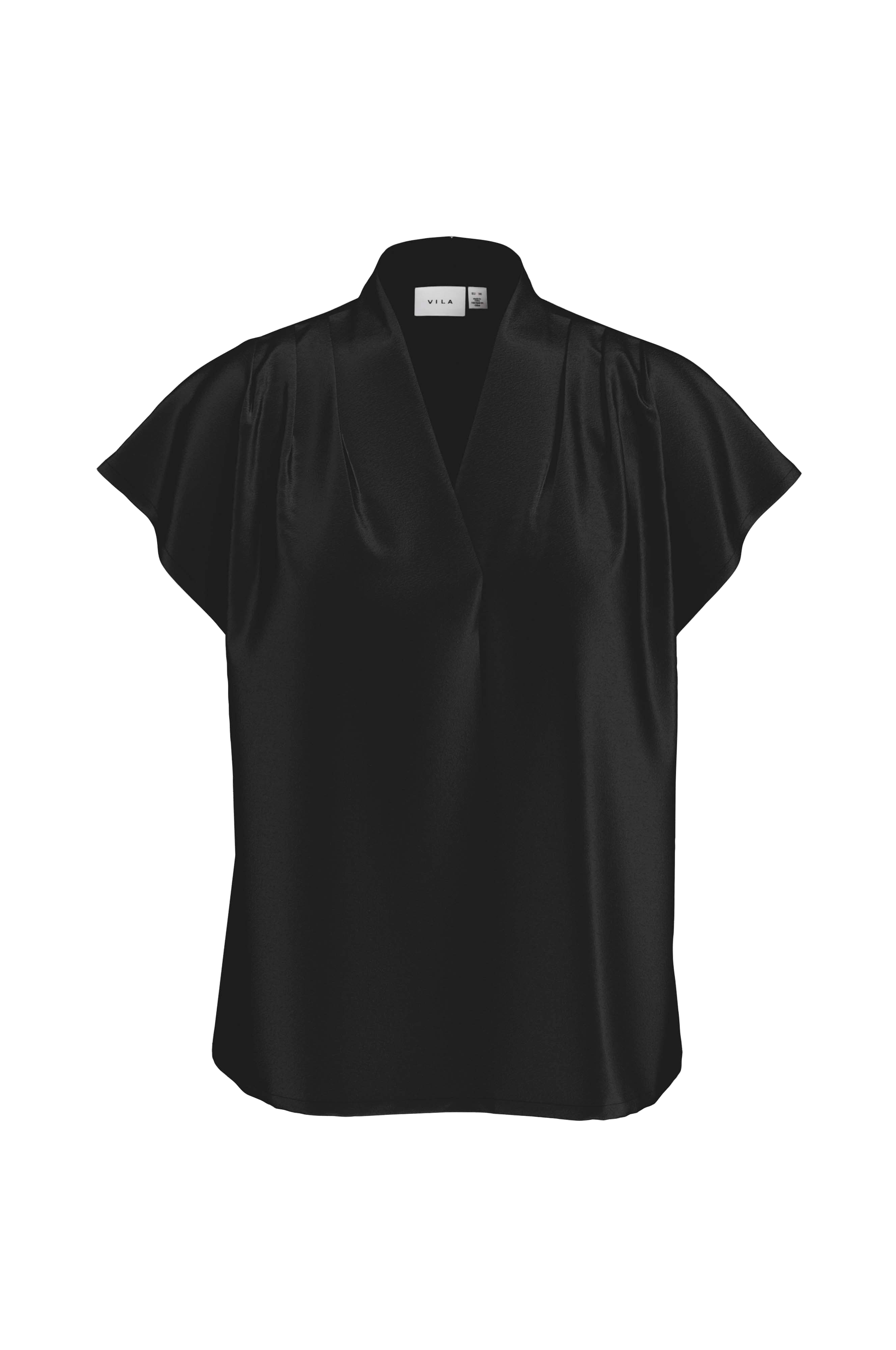 • Lige, uformel model i satin• V-formet halsudskæring• Bokslæg på skuldrene• Kort ærme