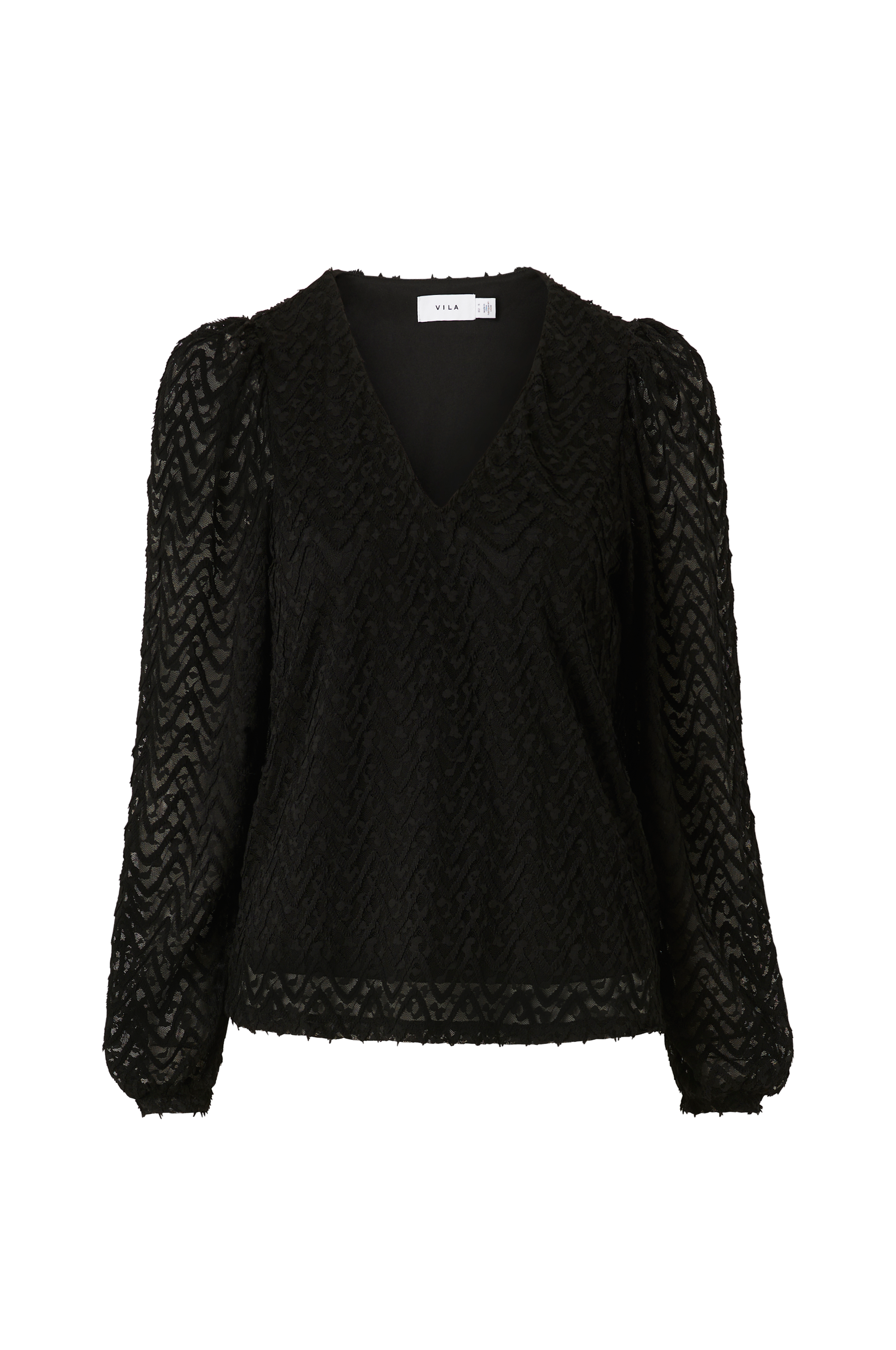 • Top i elastisk mesh med strukturmønster• V-udskæring• Transparente ballonærmer med manchet• Trikotfor