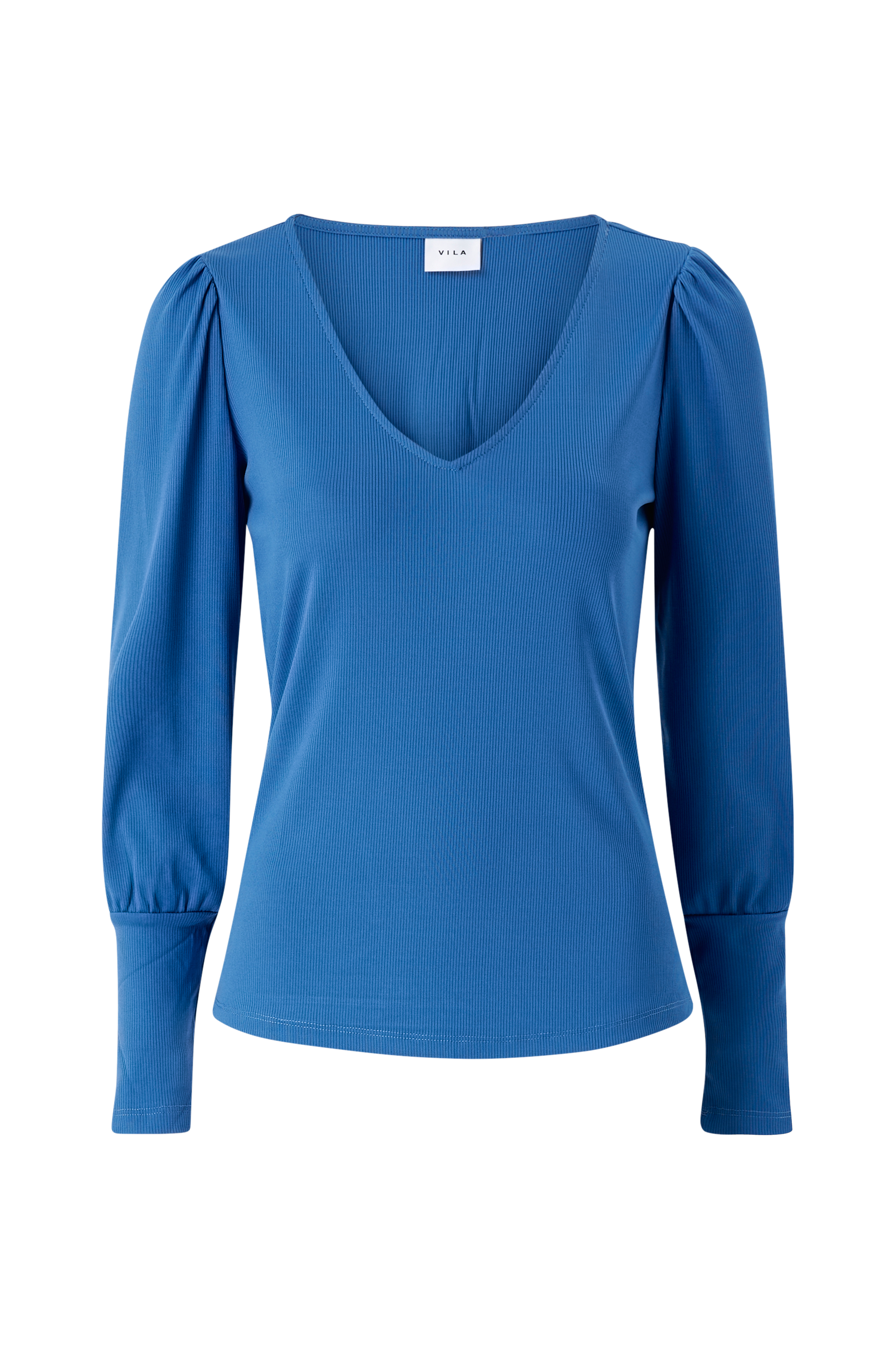 • V-udskæring• Ballonærme• Ribbet jersey med glans