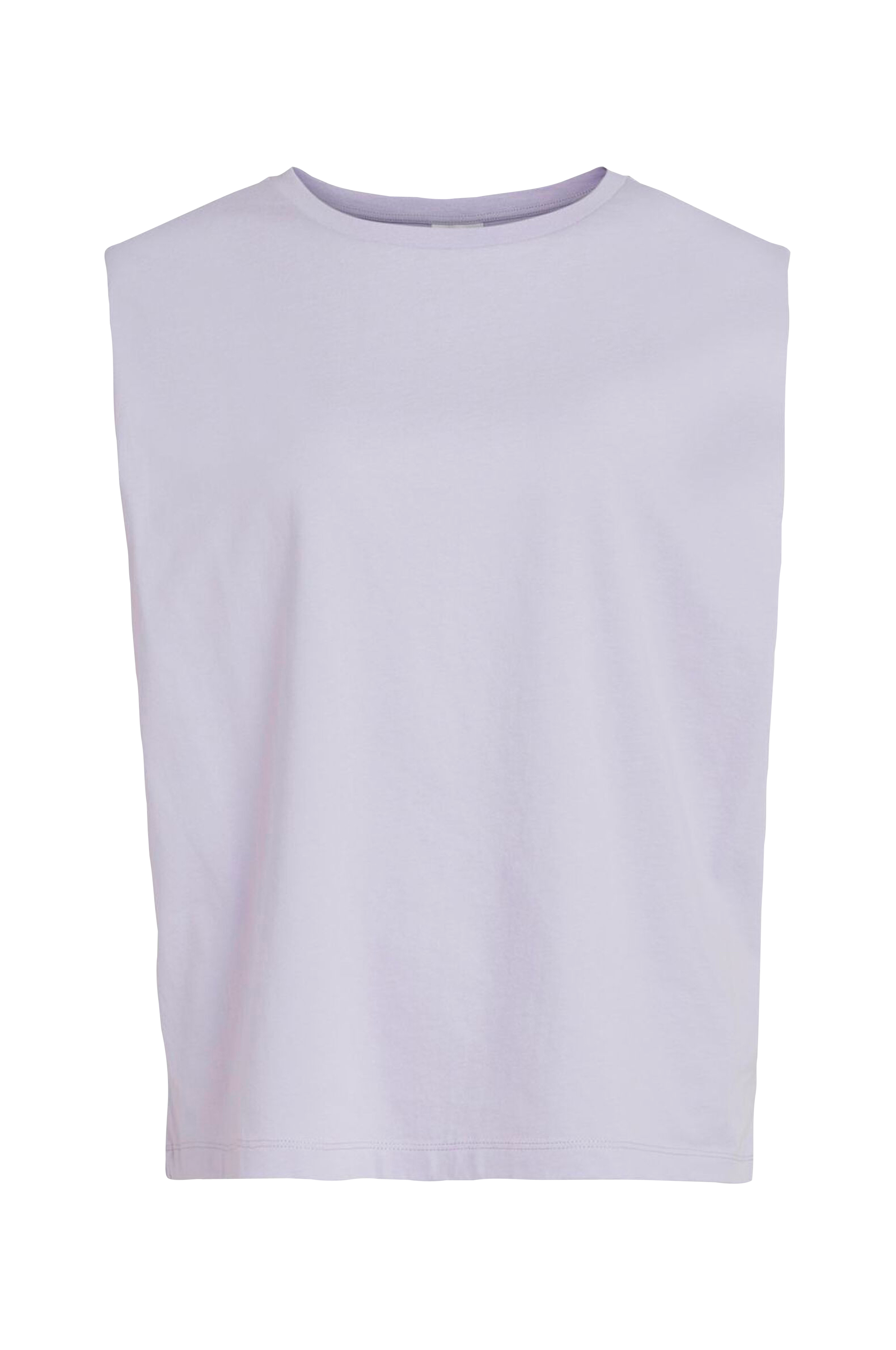 Top viFuma S/L Top fra Vila, ærmeløs top i bomuldsjersey med afslappet pasform. Skuldervattering og rund halsudskæring med ribkant.
