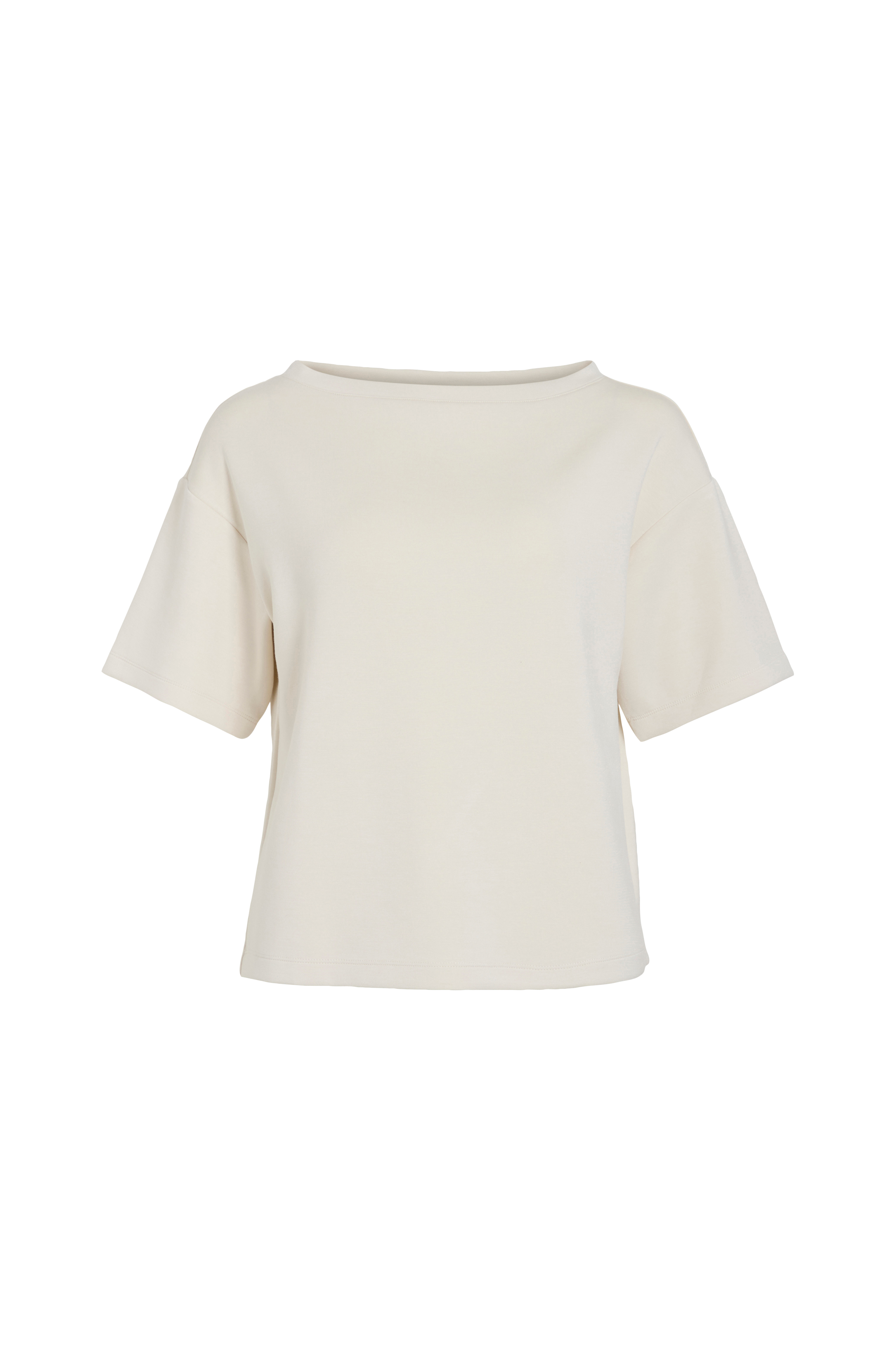 • Top i elastisk, blød modalblanding• Korte ærmer med nedsænkede skuldre• Bådhals• Firkantet pasform