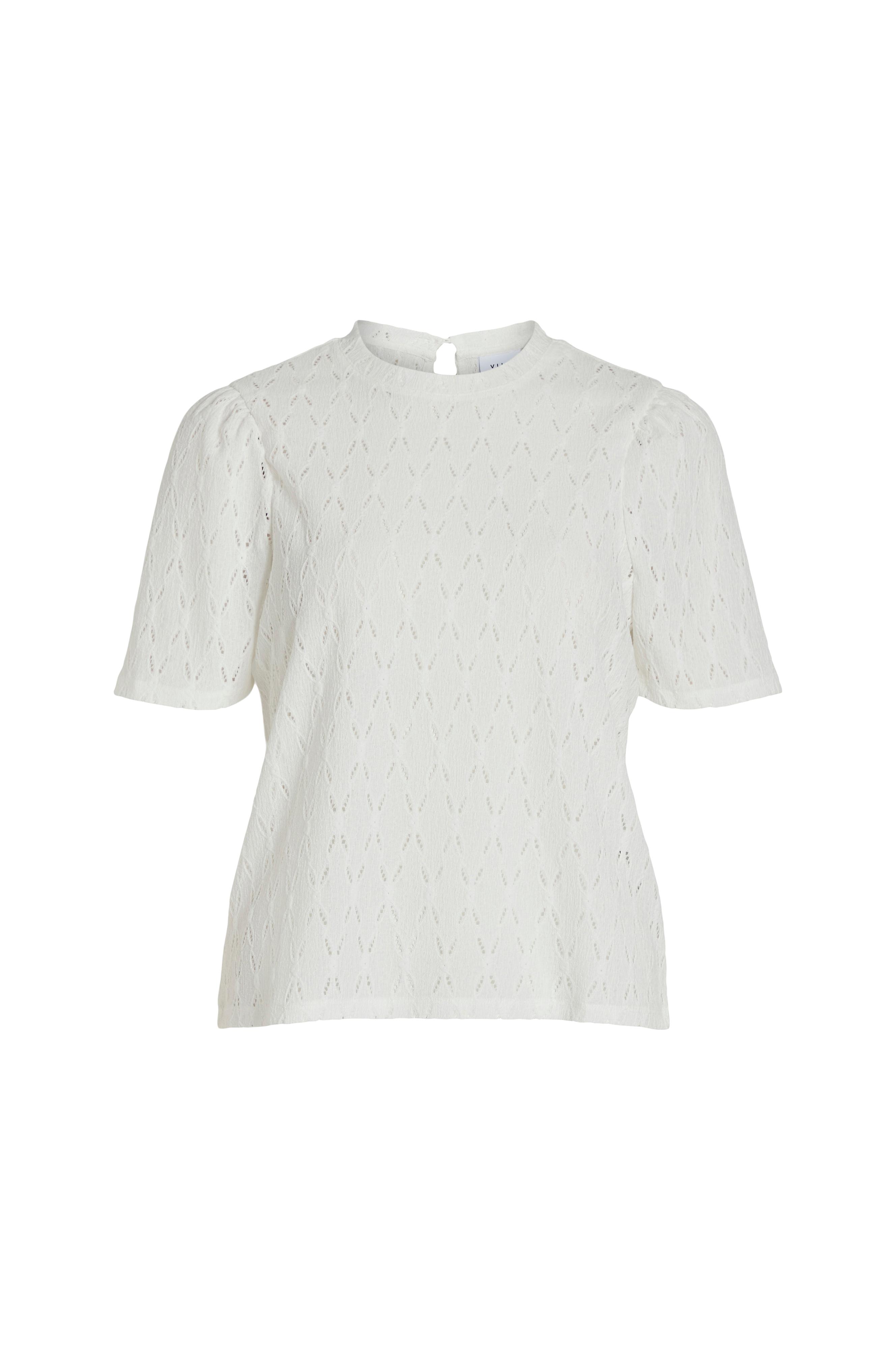 • Top med hulmønster• Korte ærmer• Samling på skuldrene• Lille åbning med knap i nakken