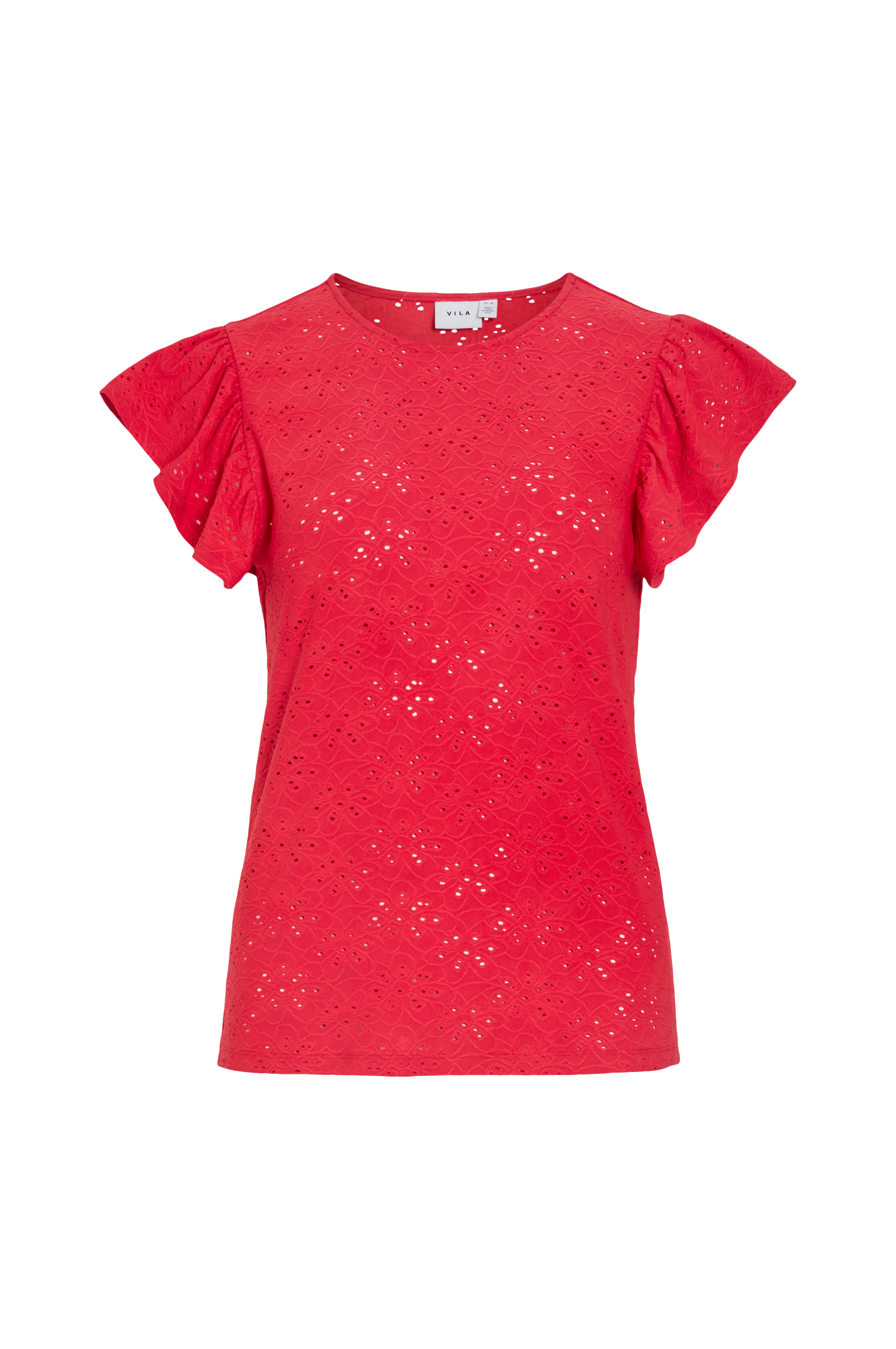 • Lige model i jersey• Hulbroderier overalt• Rund hals• Kort flagrende ærme