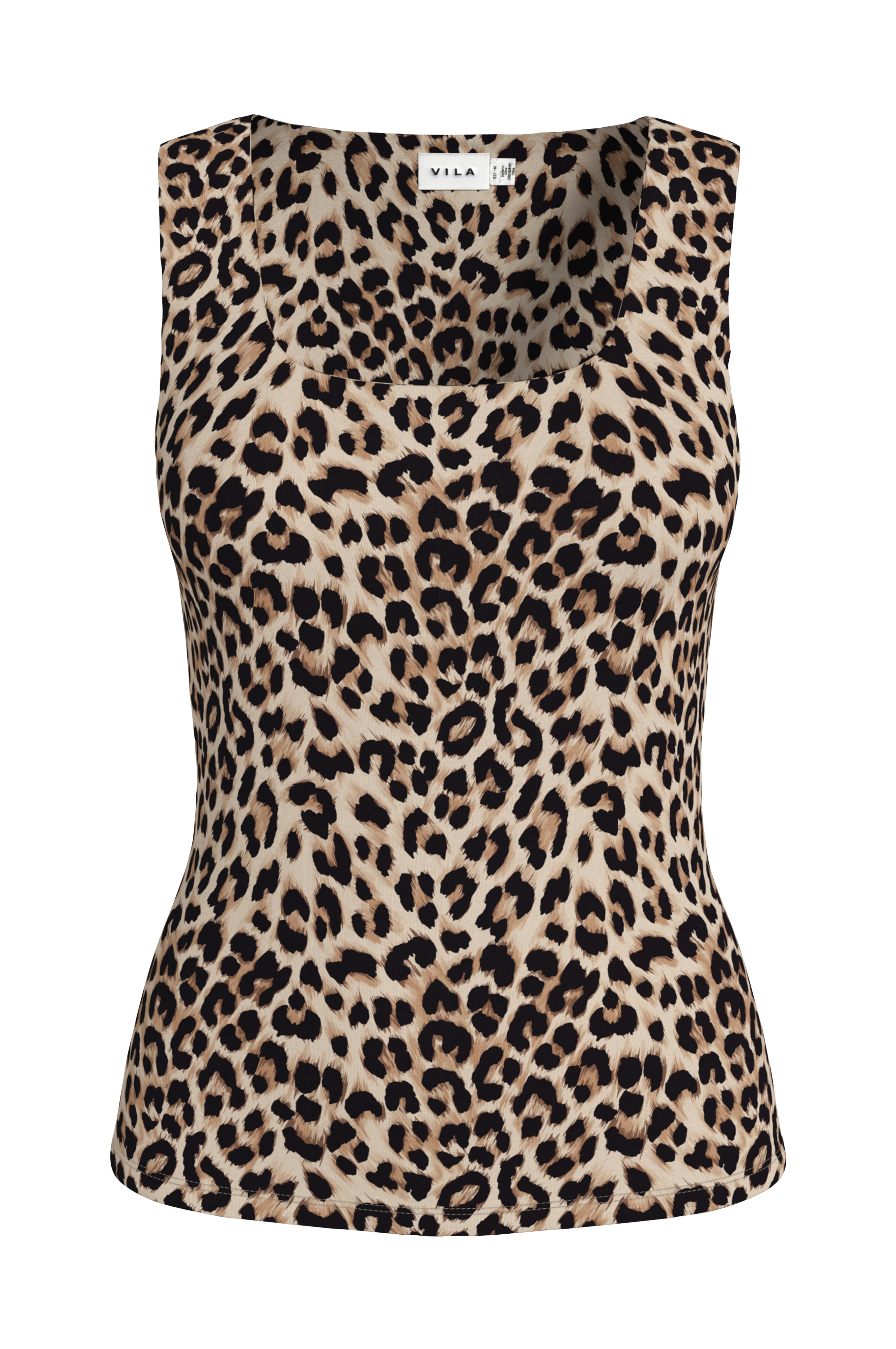 • Ærmeløs, leopardmønstret top• Rund halsudskæring• Elastisk materiale