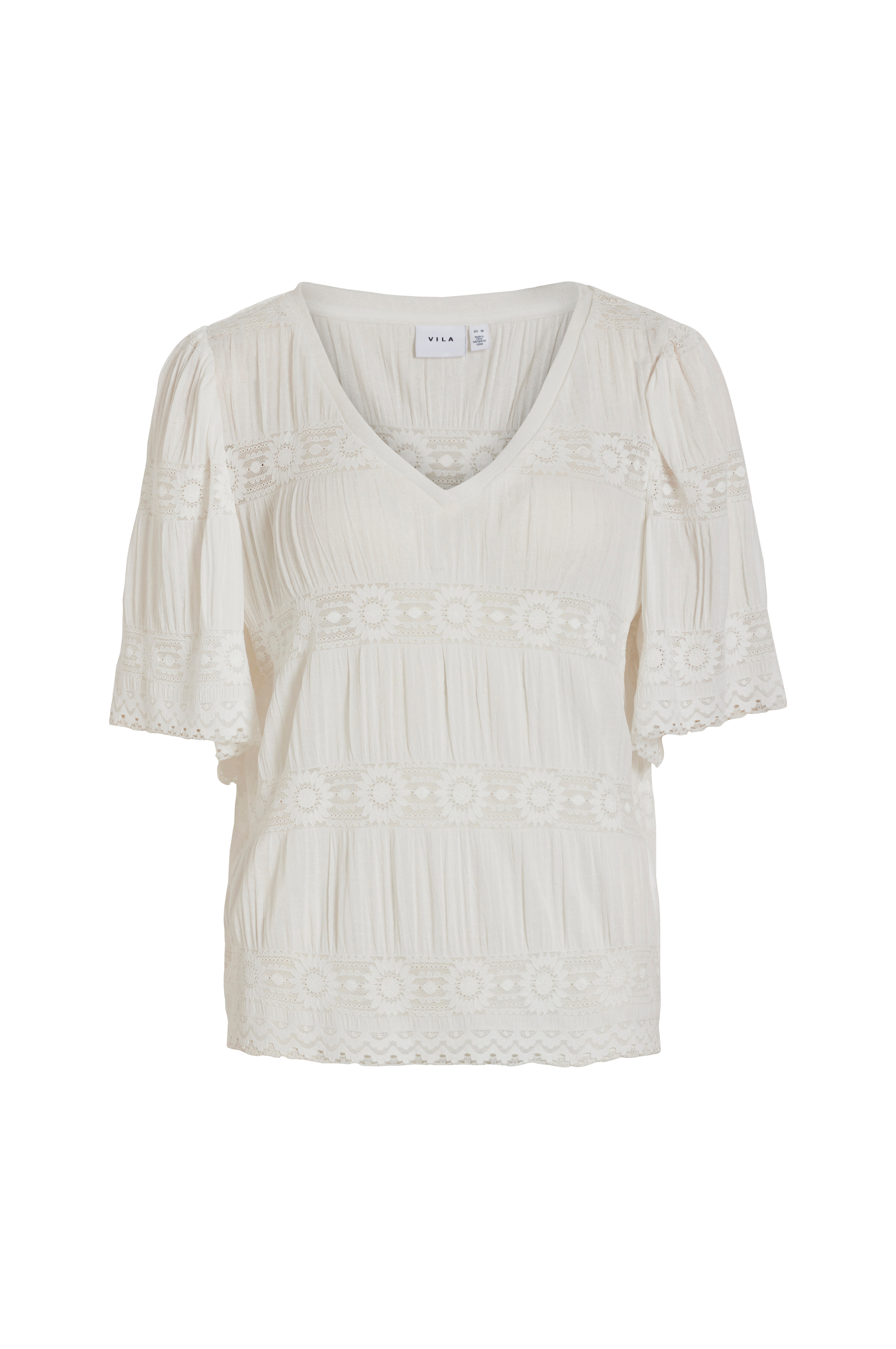 • Top med blondedetaljer• V-udskæring• Halvlange ballonærmer
