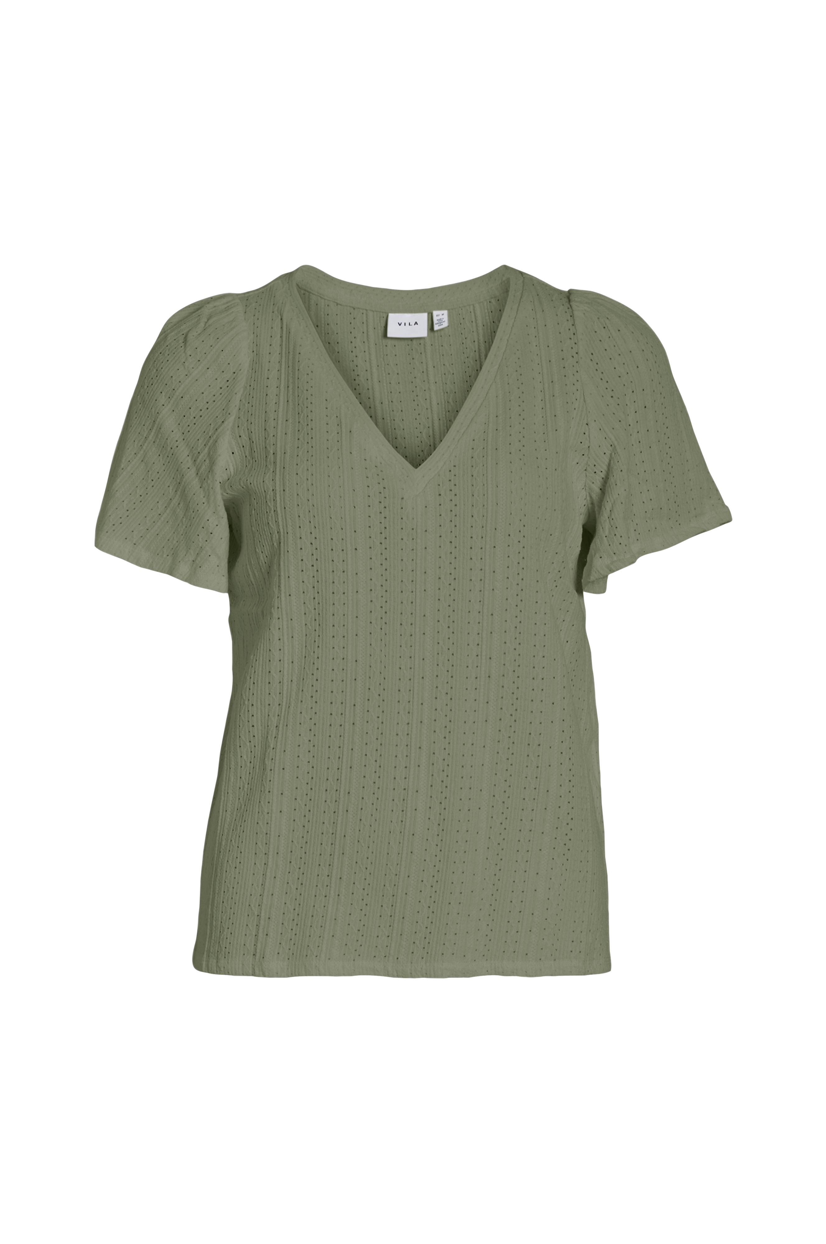 • Top med strukturmønster og hulmønster• V-udskæring• Korte, brede ærmer