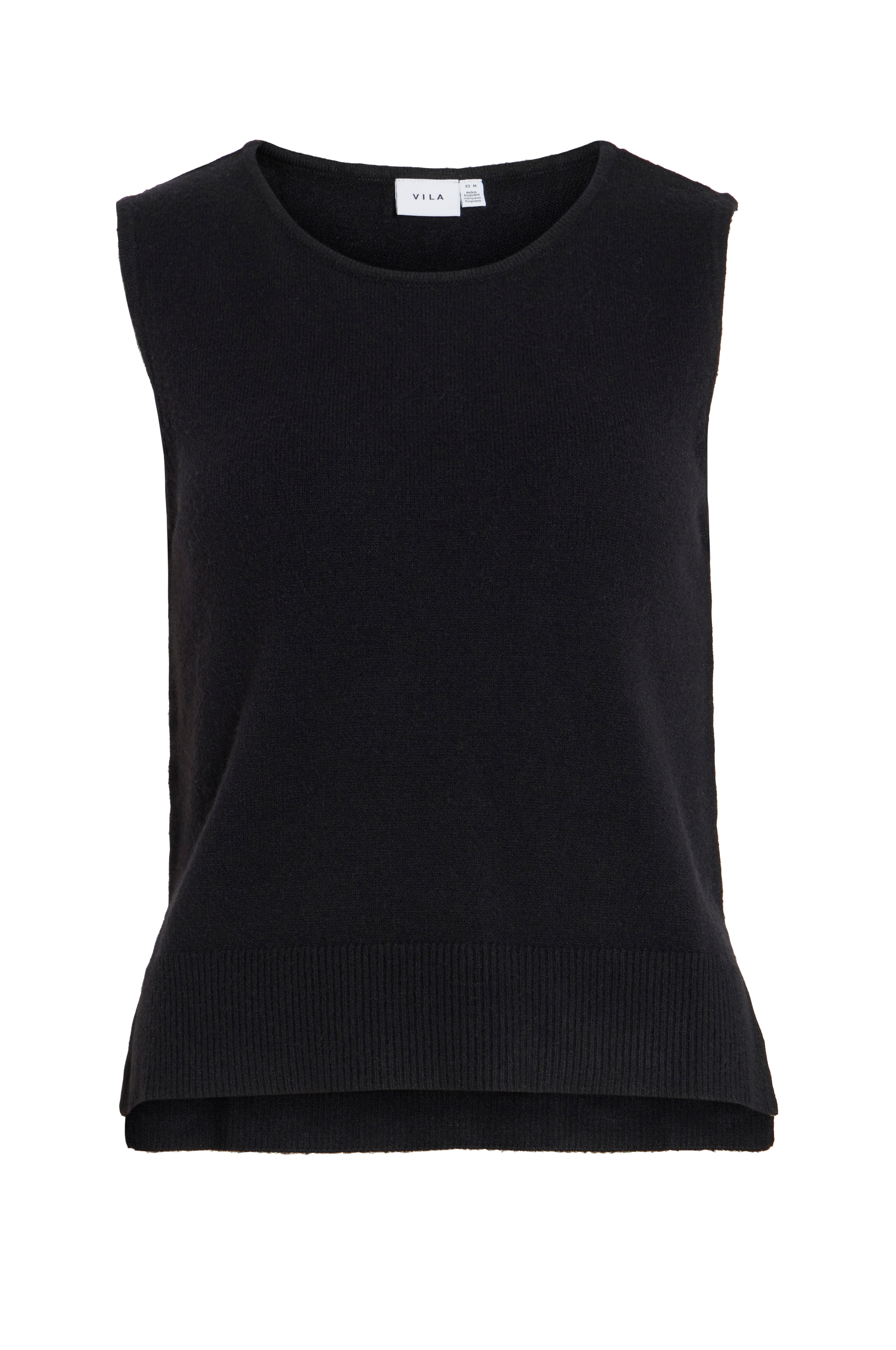 • Lige, ærmeløs model• Rund hals• Ribstrik ved nederste kant med slids i siderne og længere bagside