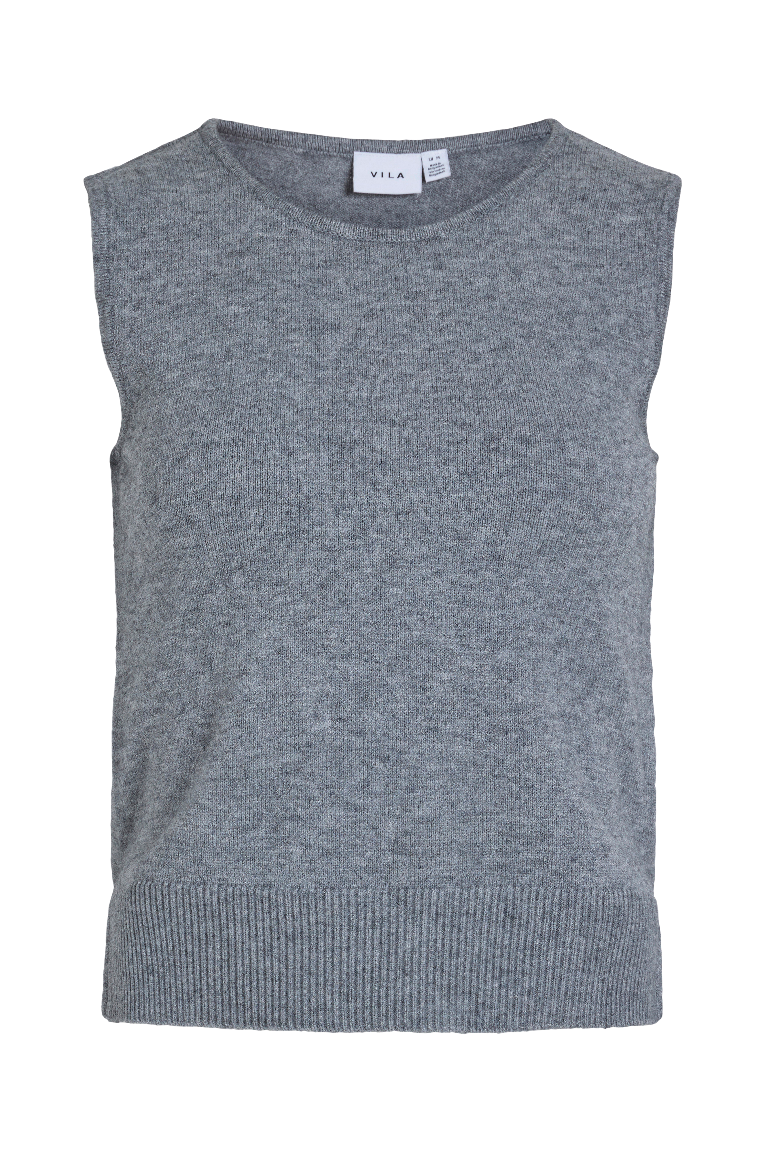 • Lige, ærmeløs model• Rund hals• Ribstrik ved nederste kant med slids i siderne og længere bagside