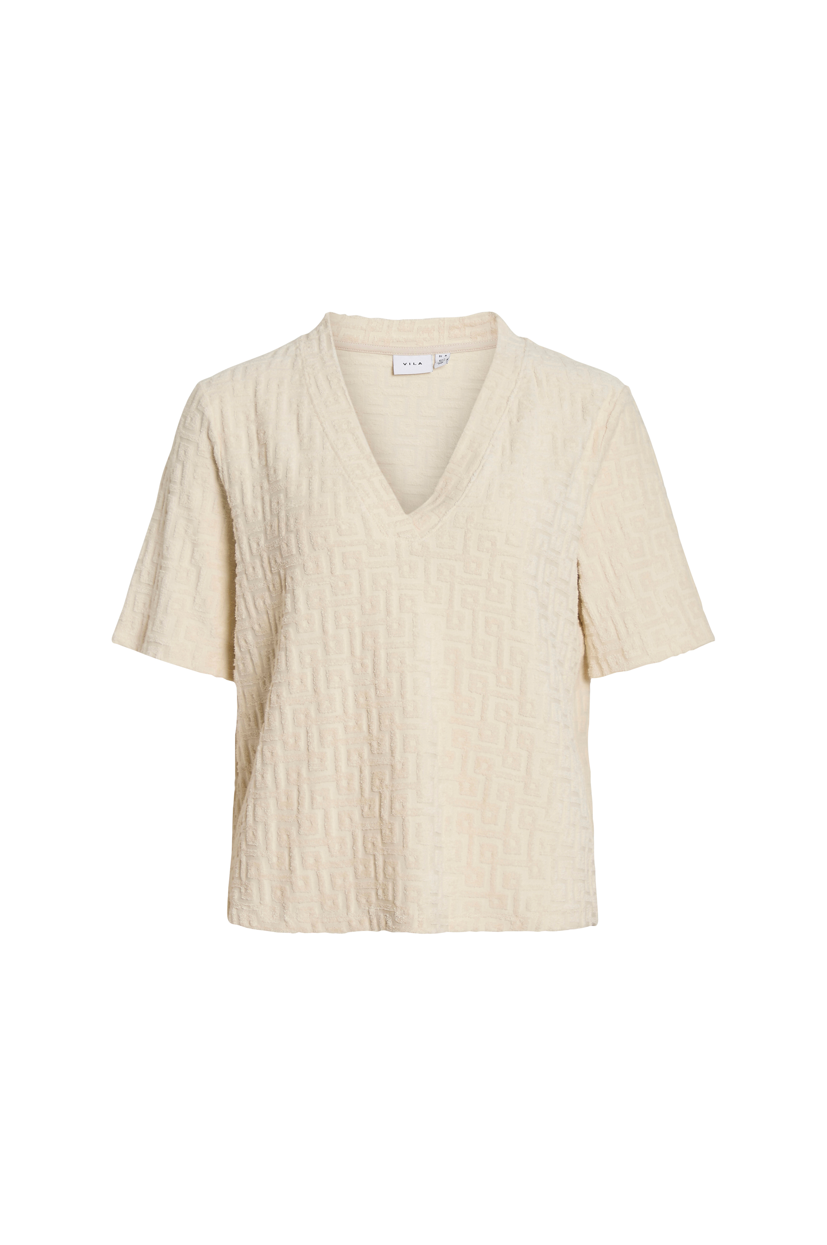 • Top med mønster i frotté• V-udskæring• Korte ærmer• Normal pasform