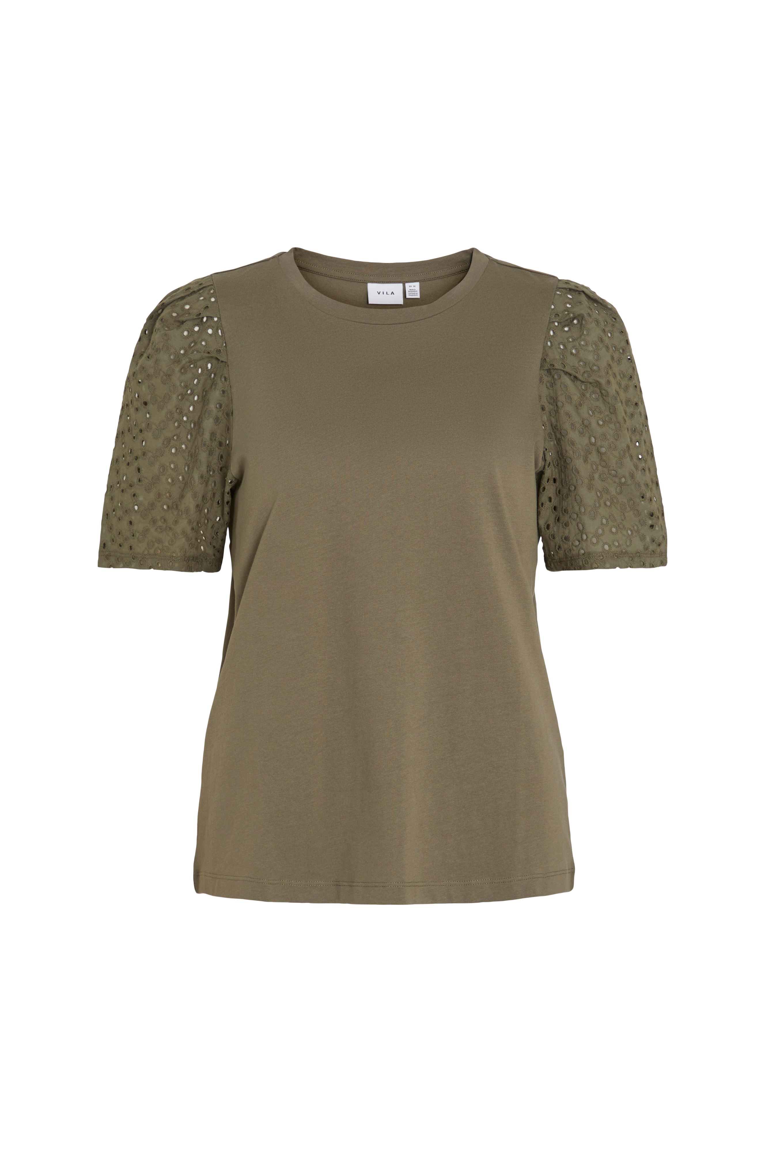 • Ballonærmer med broderet hulmønster• Lægge på skuldrene