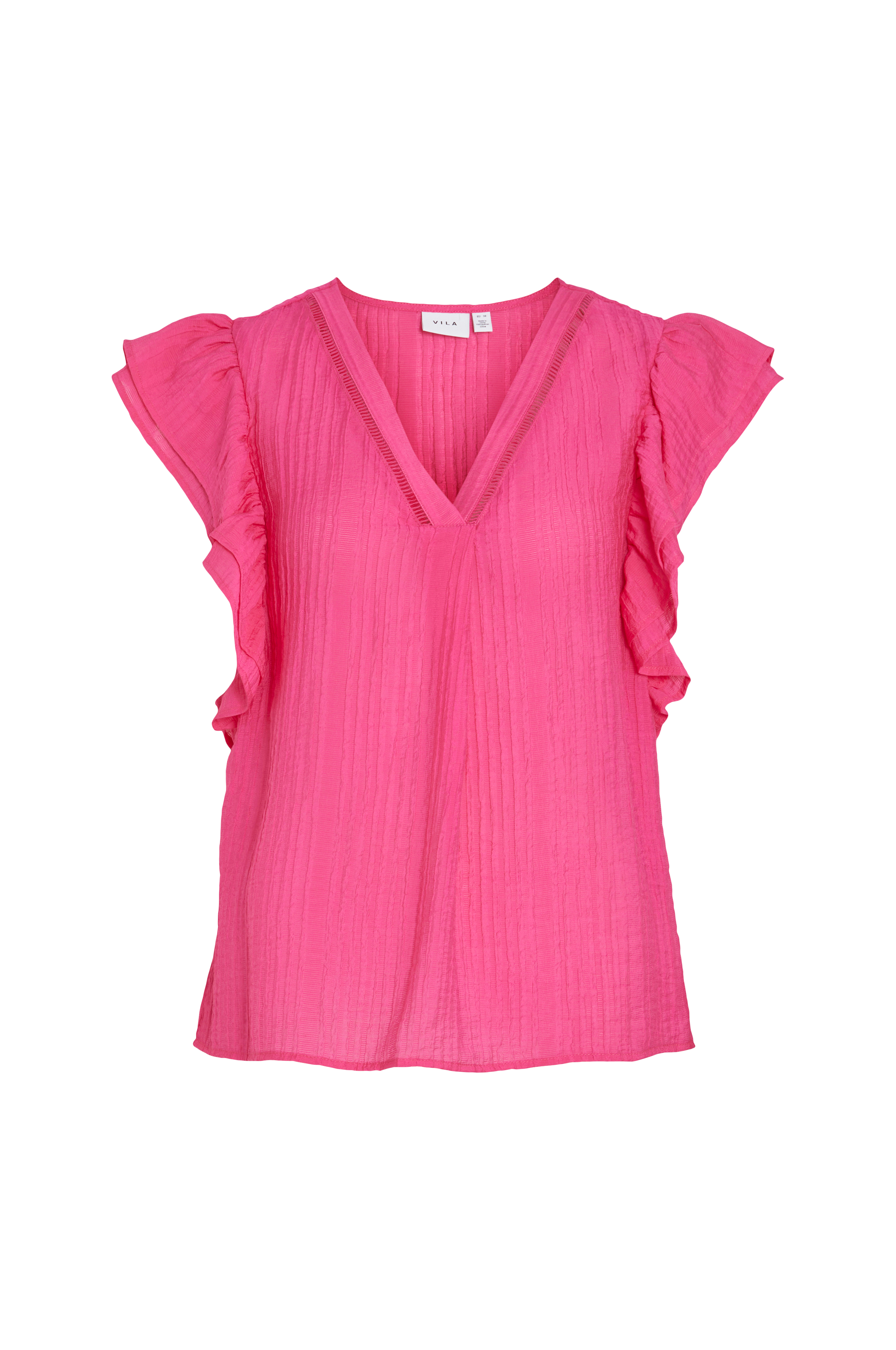 • Lige model med strukturmønster• V-udskæring med lille blondekant• Dobbelt, kort flagrende ærme