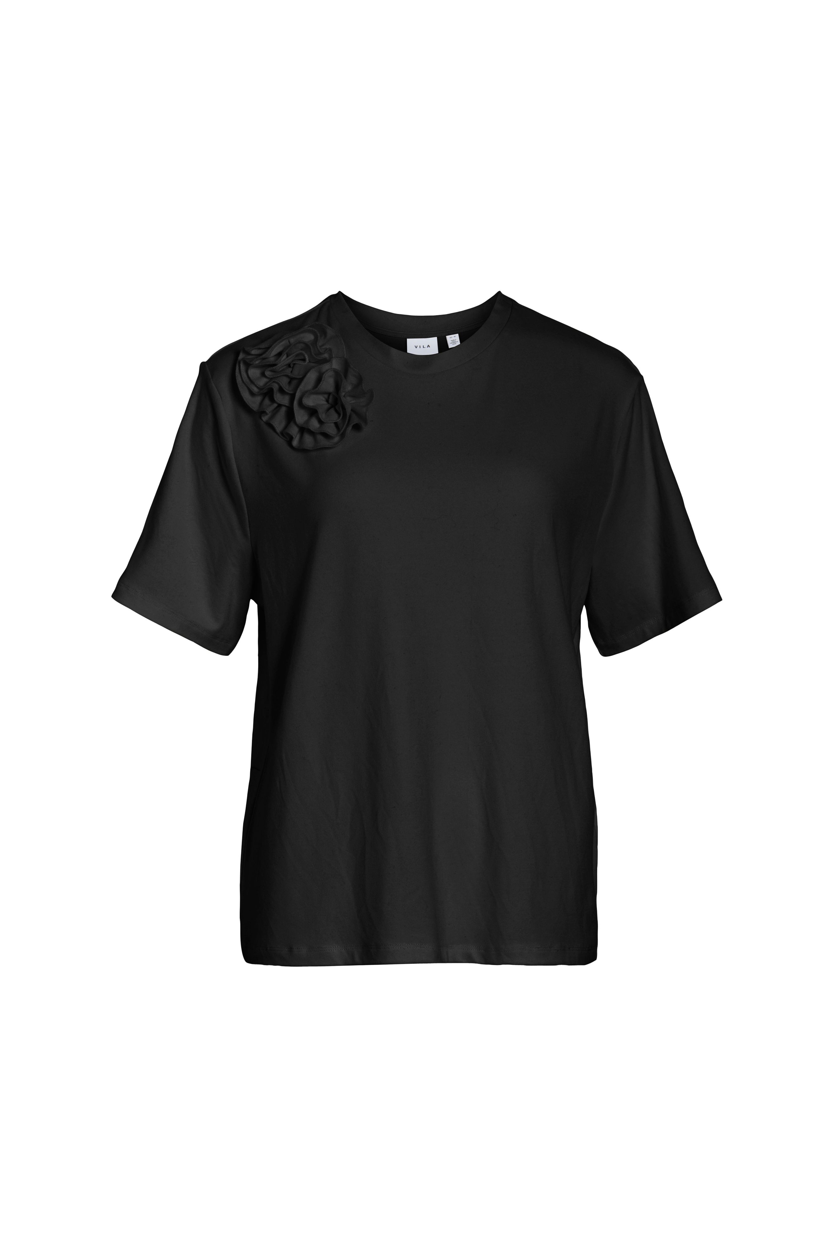 • Blød, elastisk top• Dekorative blomster ved skulderen• Rund, ribbet halsudskæring• Korte ærmer
