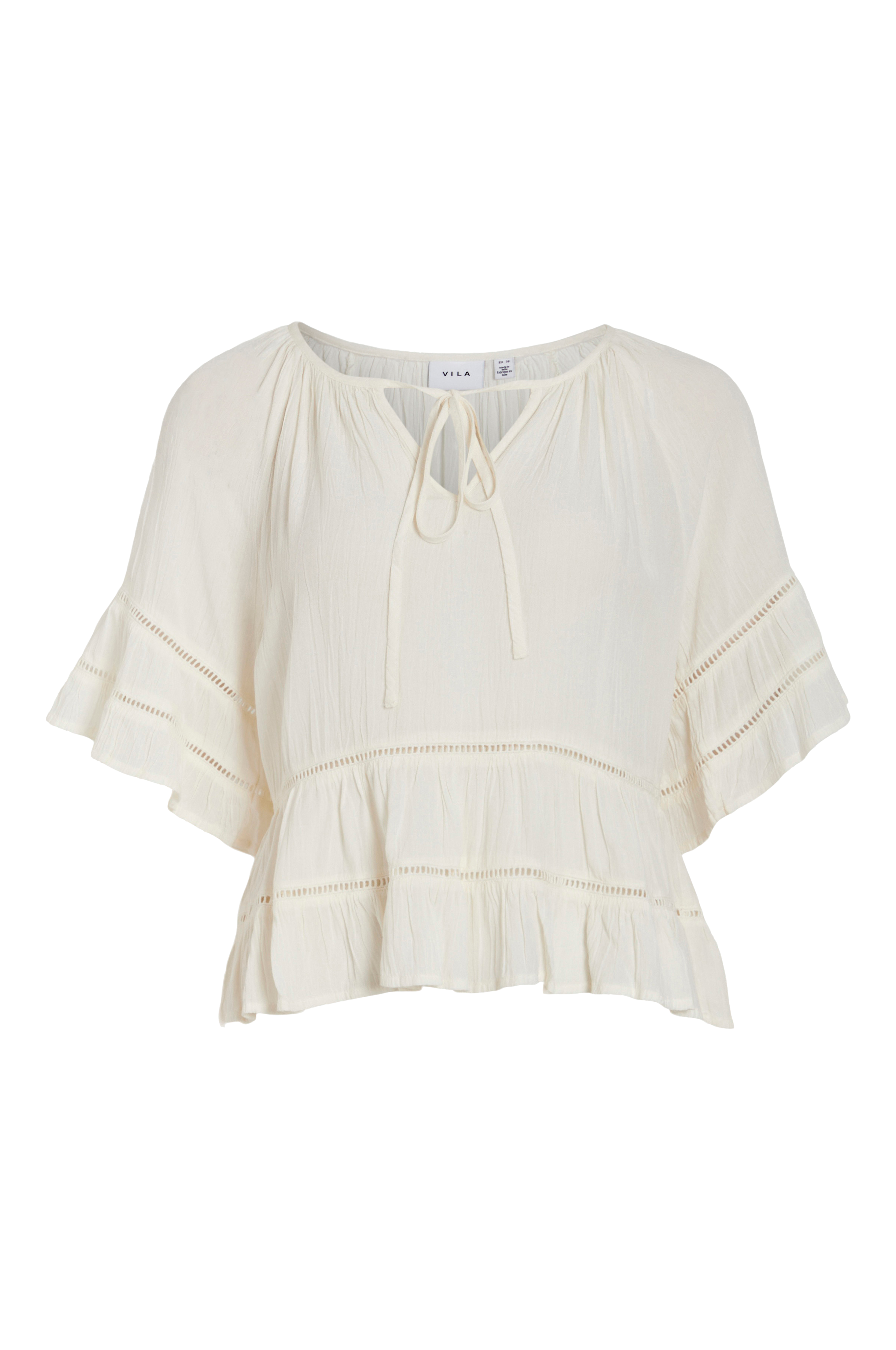 • Model i crepe• Peplumdesign med indlagt blonde• Rund hals med samling og bindebånd• Kort ærme med svaj