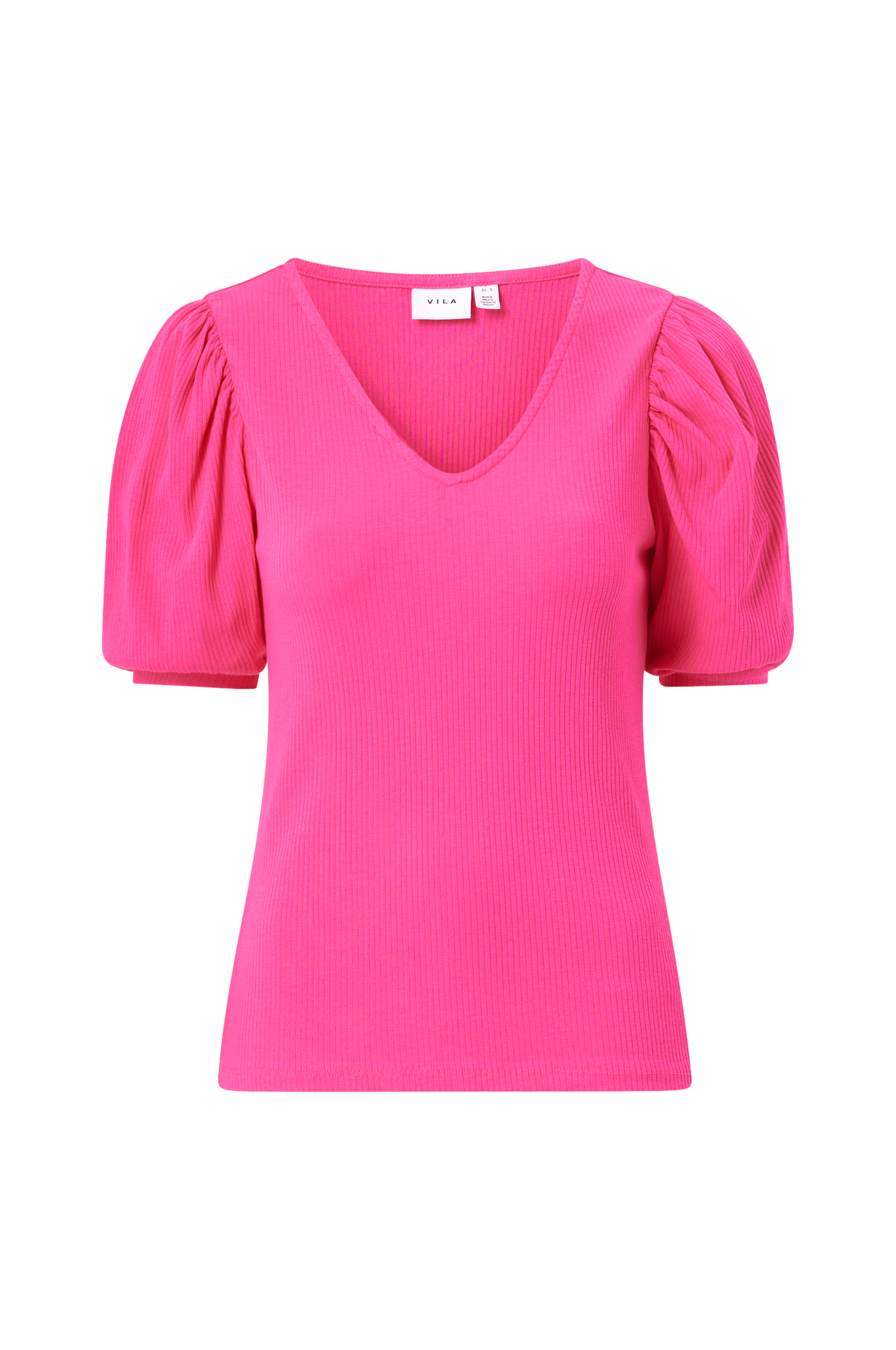 • Lige, ribstrikket model• V-formet halsudskæring• Kort, bredt ballonærme med lille kant