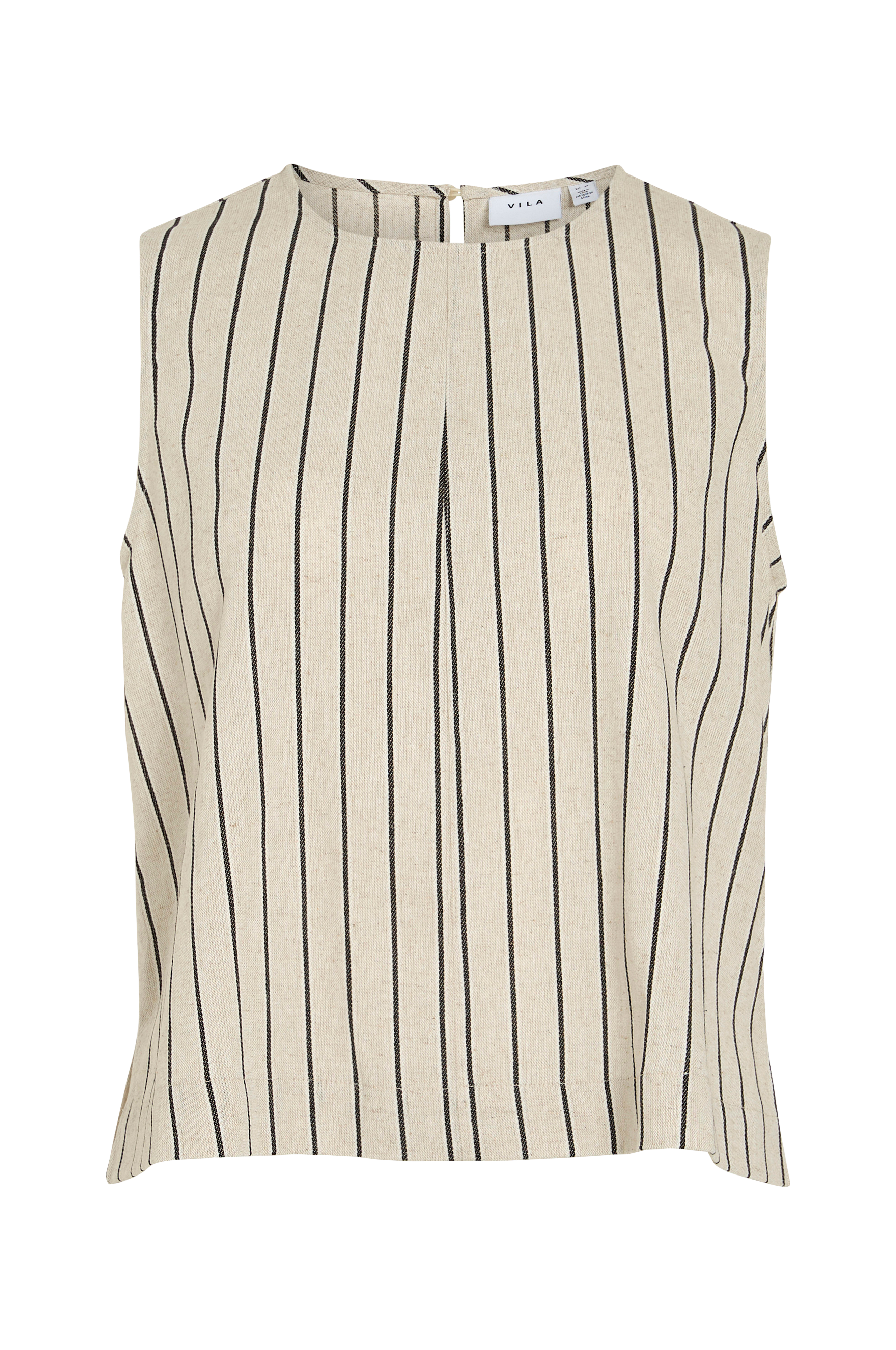 • Ærmeløs, stribet top med struktur i hør• Rund halsudskæring• Nøglehulsåbning i nakken med knap• Slids nede i siderne