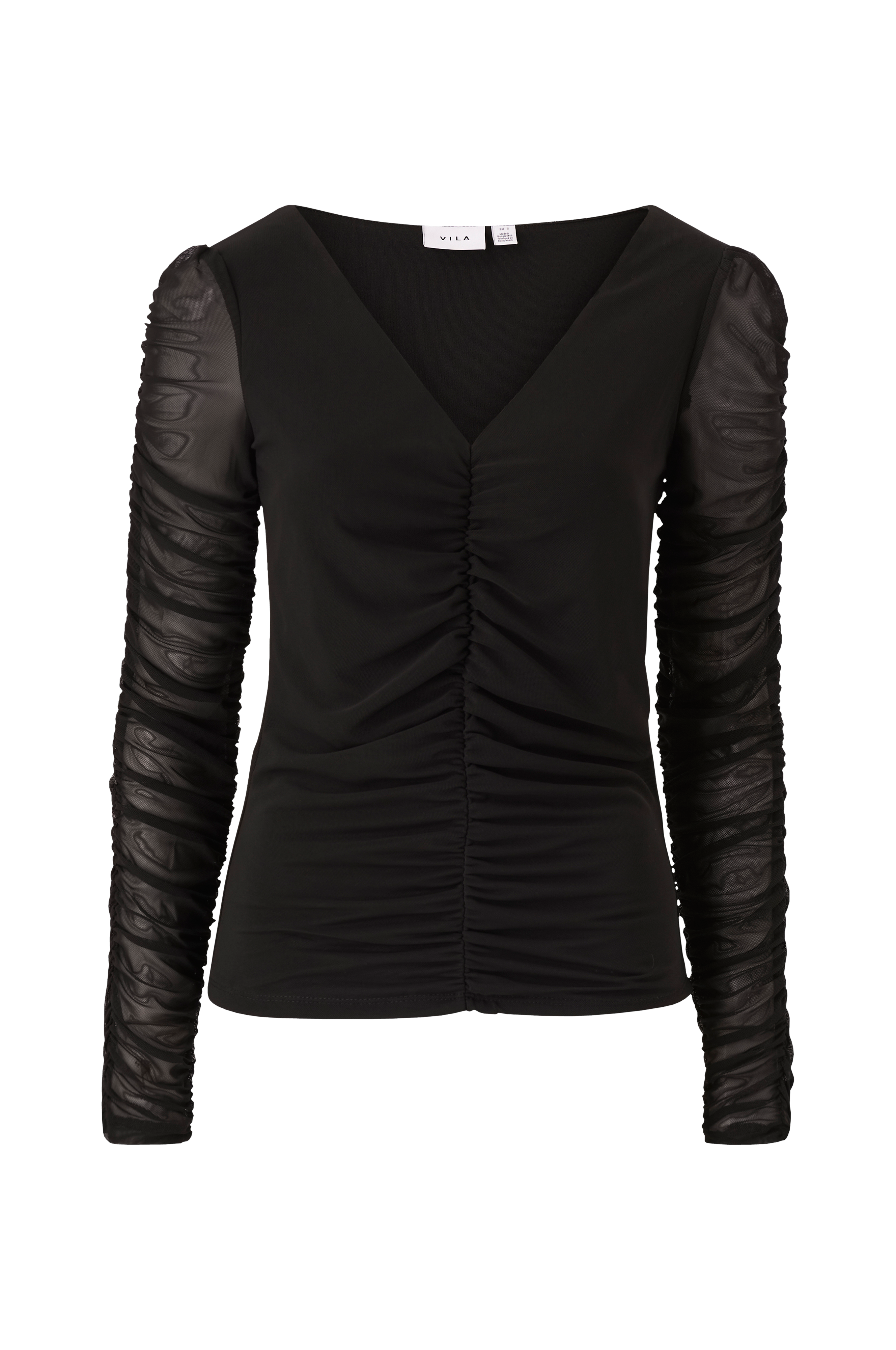 • Figursyet model i mesh• V-formet halsudskæring• Elastisk drapering foran og på ærmerne• Foret