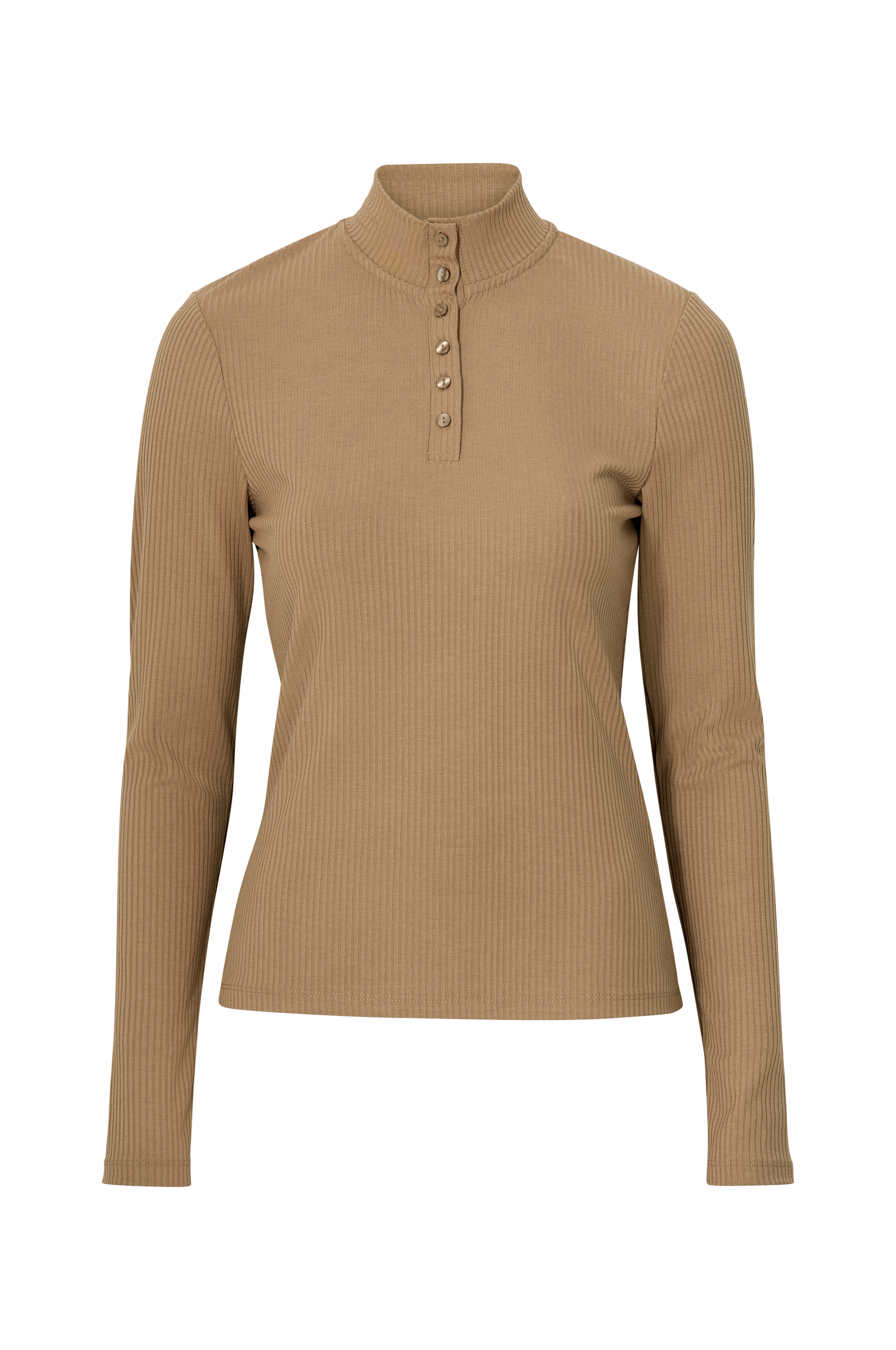 • Langt ærme• Ståkrave• Knapper oppe foran• Fremstillet af ribbet jersey• Produktet indeholder genindvundet materiale, som genbruges for at reducere mængden af affald samtidigt med at der ikke anvendes nye ressourcer.