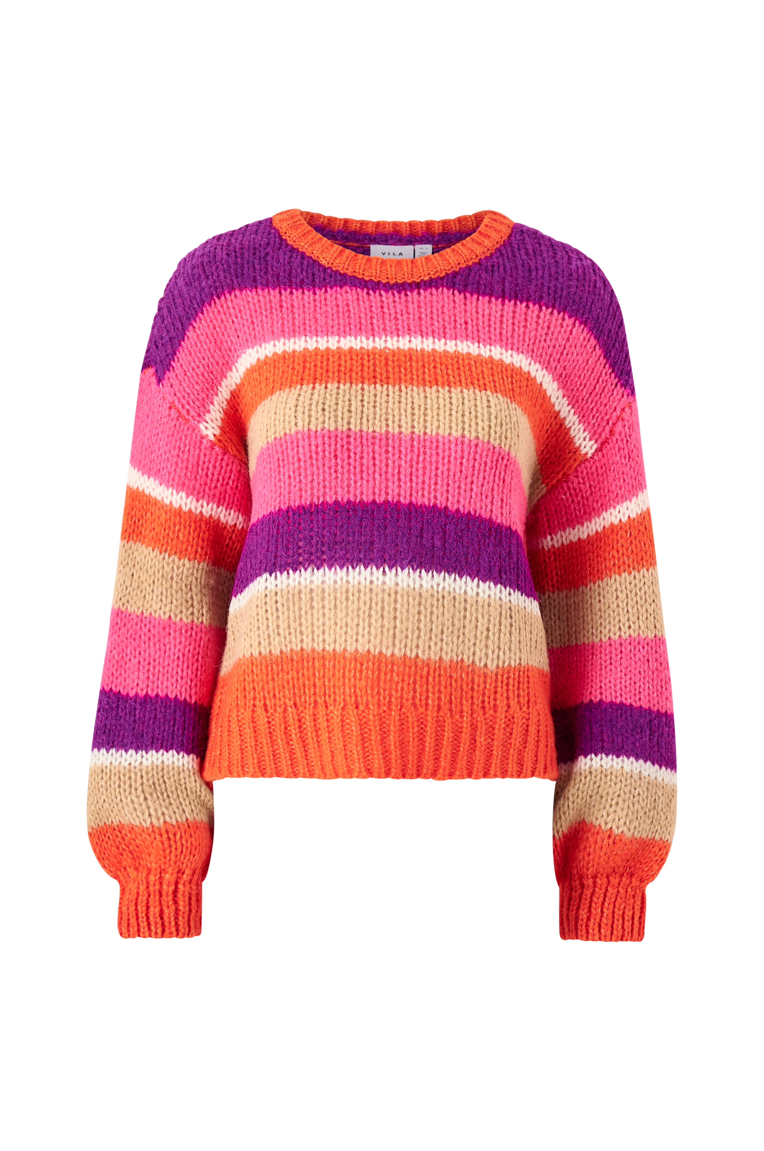 • Grovstrikket, farverig trøje• Nedsænkede skuldre• Produktet indeholder genindvundet materiale, som genbruges for at reducere mængden af affald samtidigt med at der ikke anvendes nye ressourcer.
