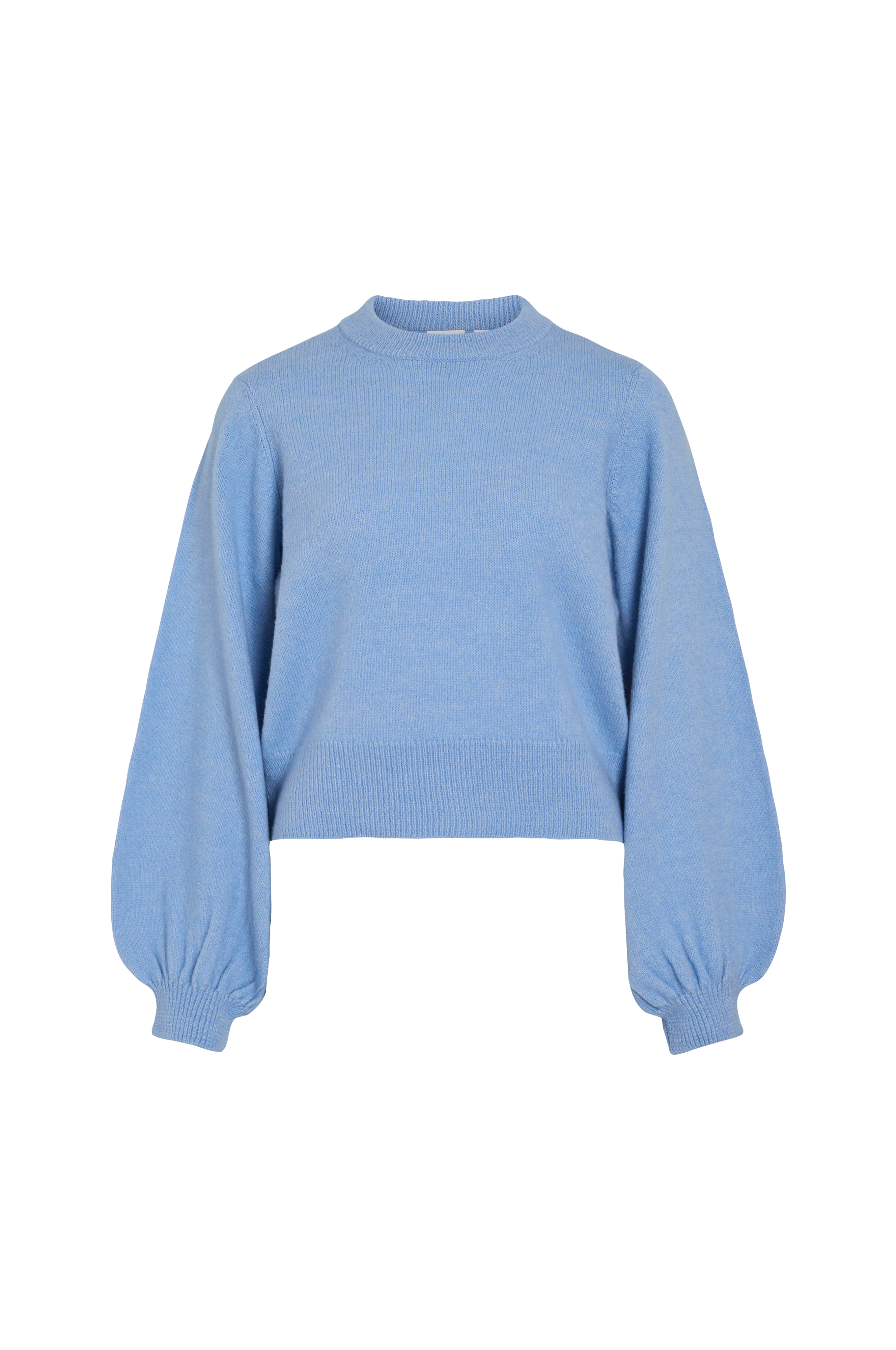• Strikket trøje• Rund, ribbet halsudskæring• Ballonærmer• Ribmanchetter ved manchetterne• Ribstrikket søm