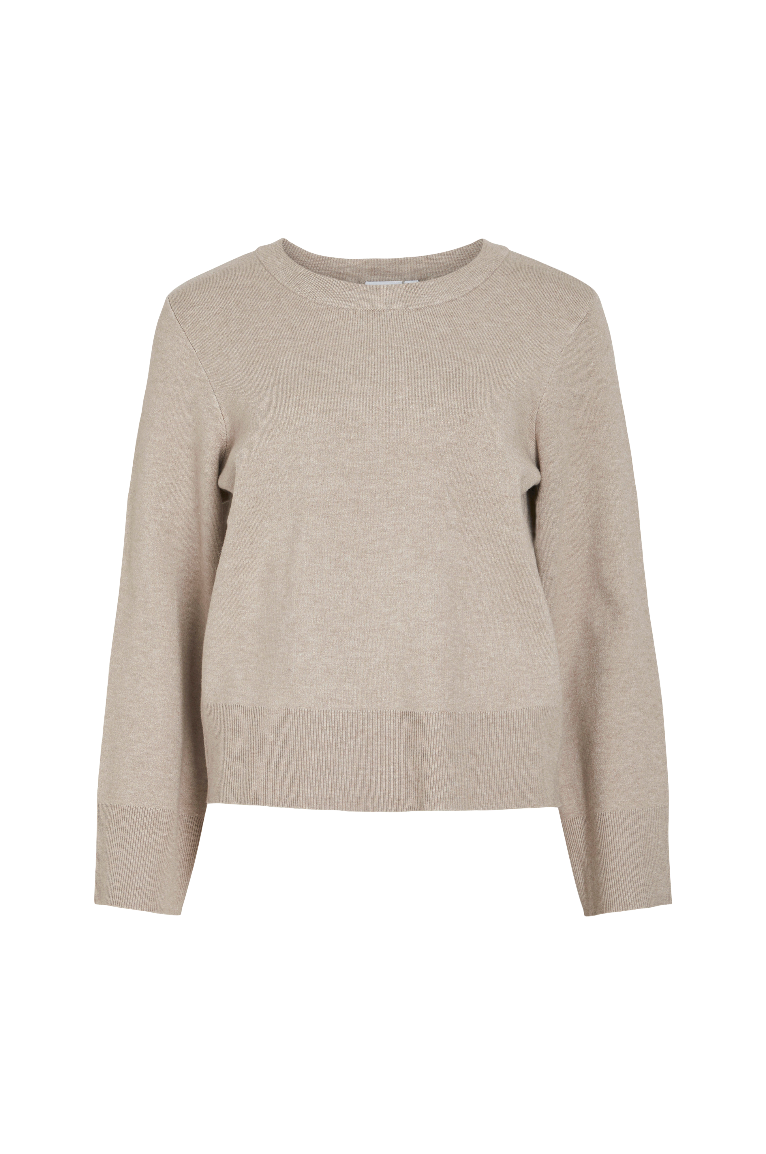 • Blød, fintstrikket model• Halsudskæring med ribbet kant• Lige, bredt ærme• Bred ribstrik nederst og ved manchetterne